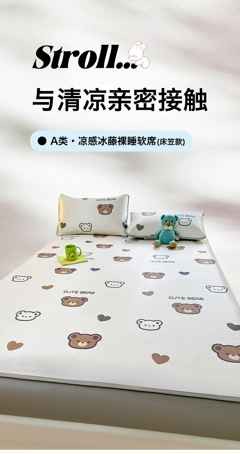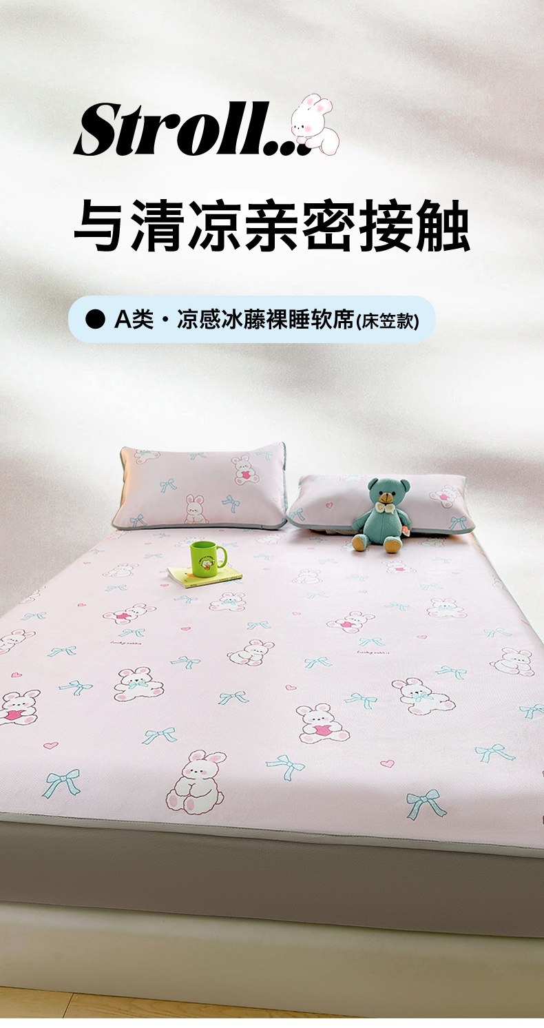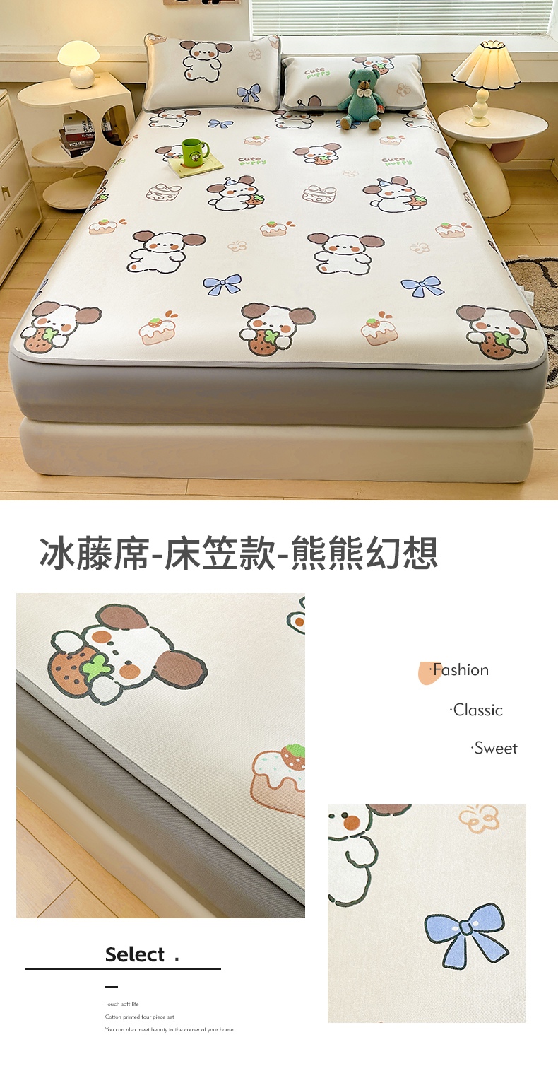 商品名称:(总)雯豆家纺 2025夏季新品冰藤印花床笠三件套加厚冰丝软藤席小清新印花床罩单件