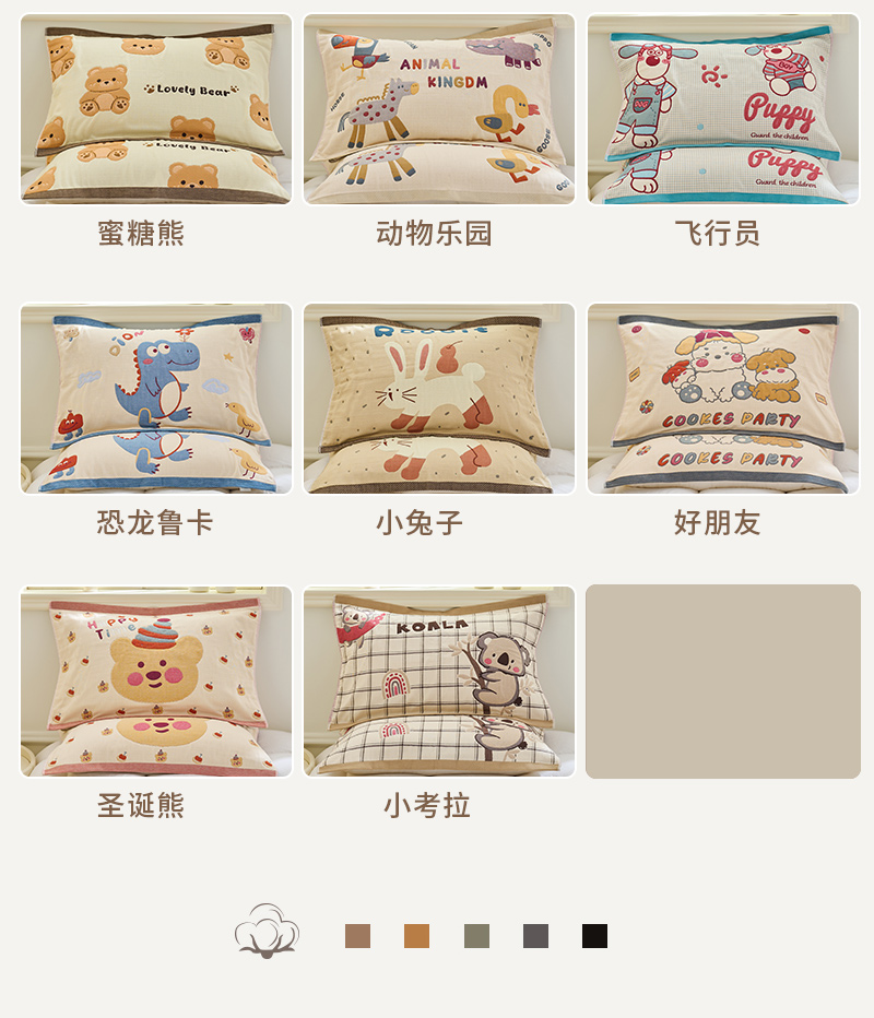 • 91家纺网 家纺一手货源 找家纺 2025新款可爱卡通全棉八层纱布加厚枕巾 好朋友