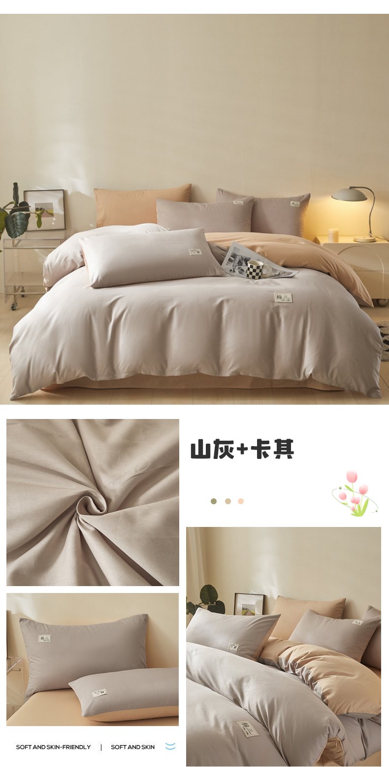 当前位置: 91家纺网 > 商品网购 > 床品套件 > 四件套 > 全棉普通四件套 > 莱通家纺 2025新款纯色双拼四件套 山灰+卡其