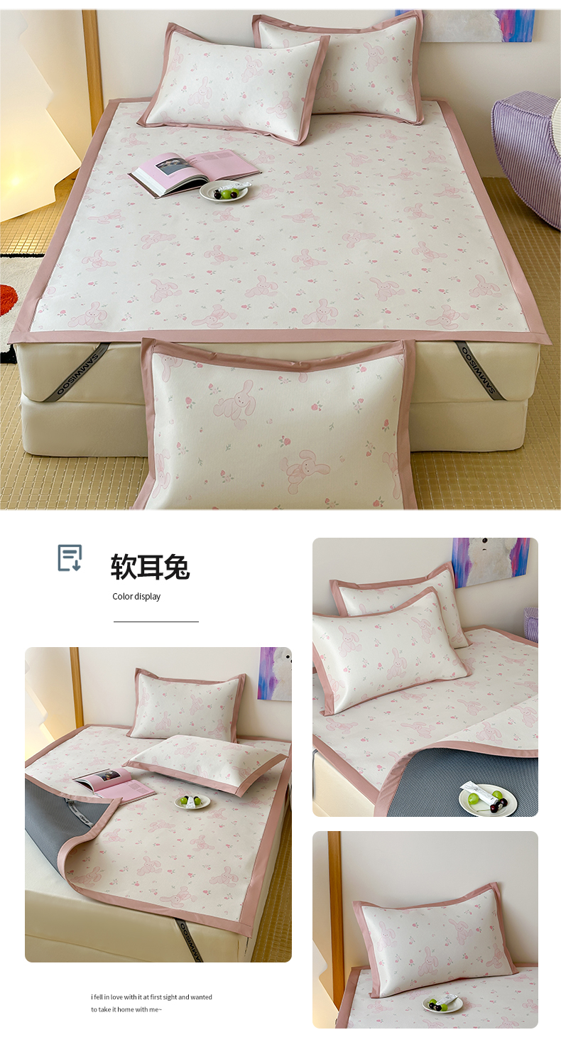 商品名称:三味舒屋 2025新款抗菌防螨900D高端养生印花冰藤凉席 软耳兔 床笠款