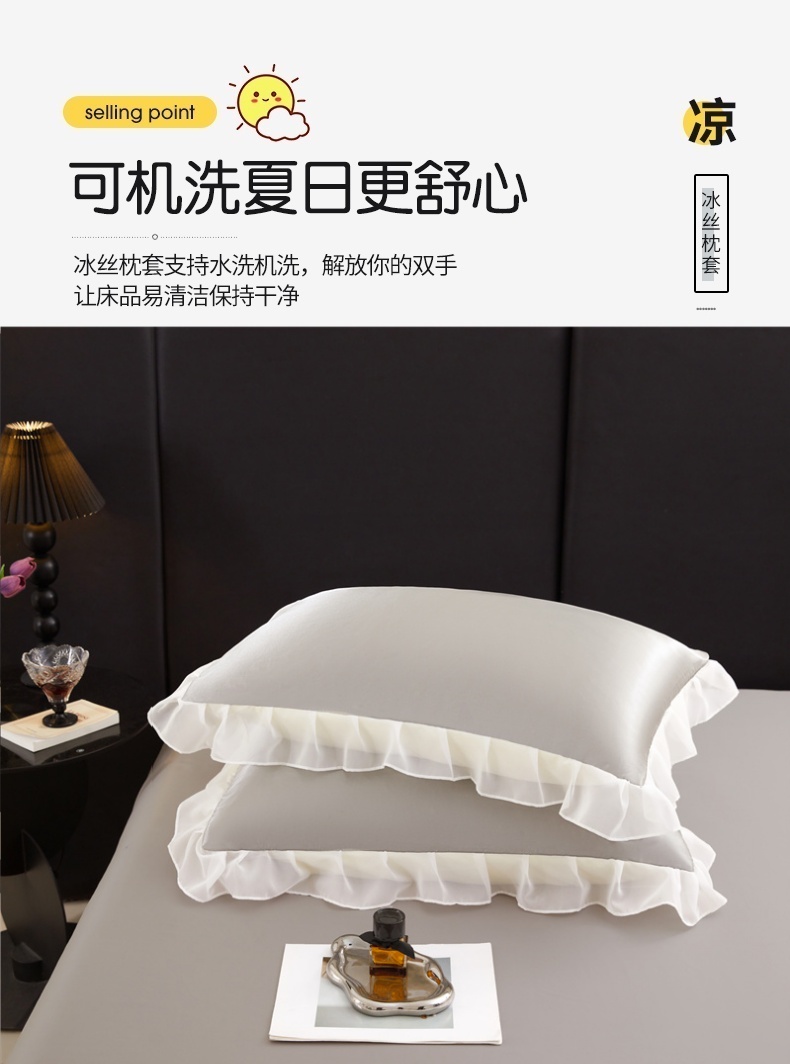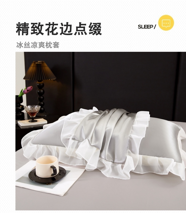 商品名称:梦舒羽 2025新款公主风夏季冰丝枕套单人一对装可水洗花边枕头套宿舍48x74cm枕芯套枕头套 花边款-典雅灰