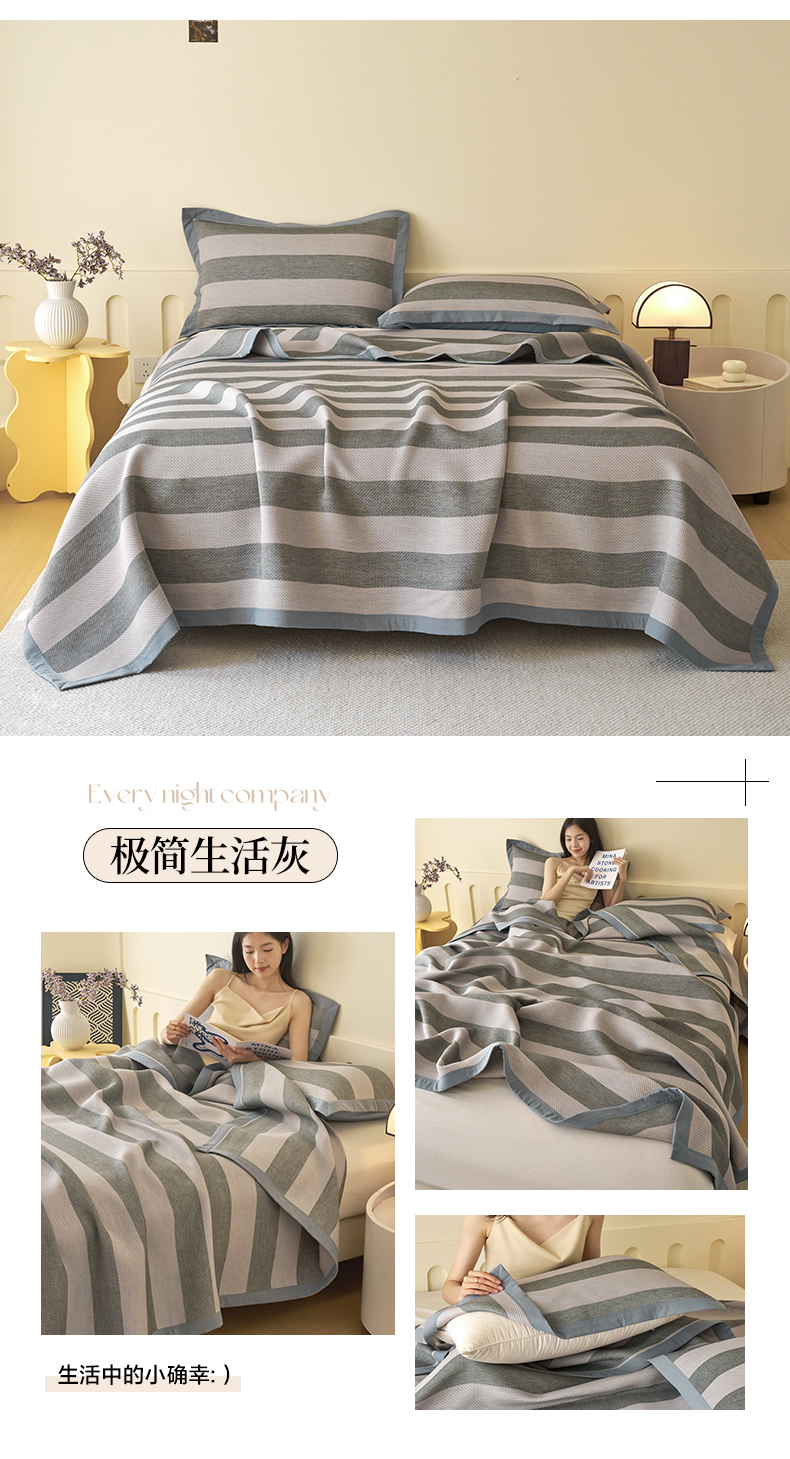 • 91家纺网 家纺一手货源 找家纺 棠薇家纺2025新款简约风多功能纱布盖毯纱布毯子毛巾被床盖沙发巾单毯枕巾枕套三件套 极简生活灰