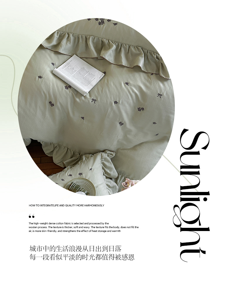 (总)名品优仓2023新款毛巾绣撞色荷叶边四件套,拾光兔,铃兰花开,爱丽兔,太阳花清爽绿,太阳花芝芝奶绿,兔然暴富