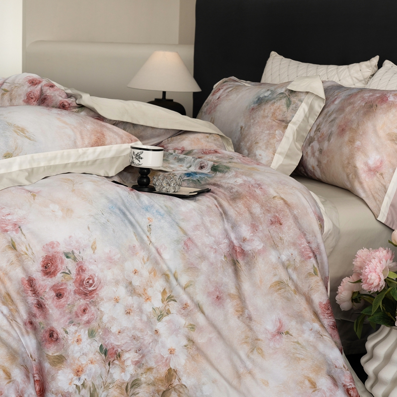 (总)馨蕊家居 2025新款春夏新品天丝印花80SLF奥地利兰精天丝四件套-初见,天丝初见-蔷薇粉,天丝初见-氧气绿