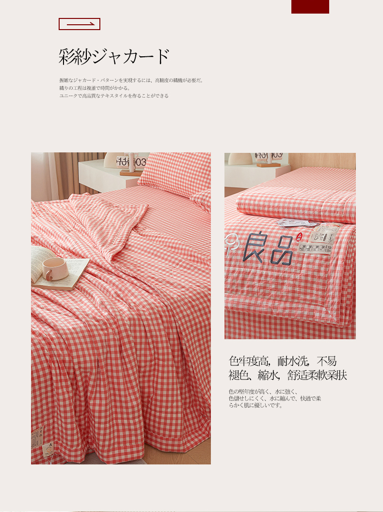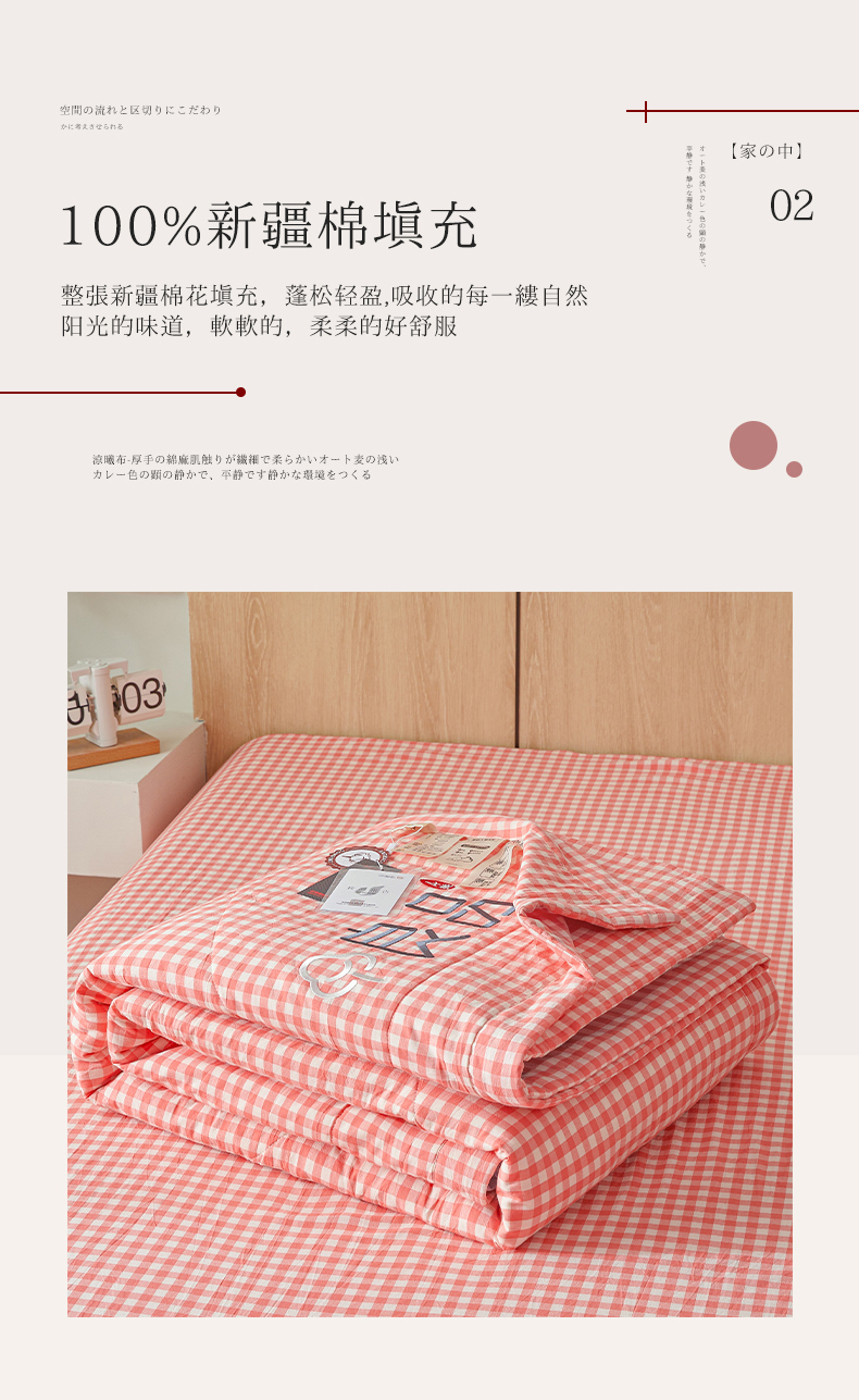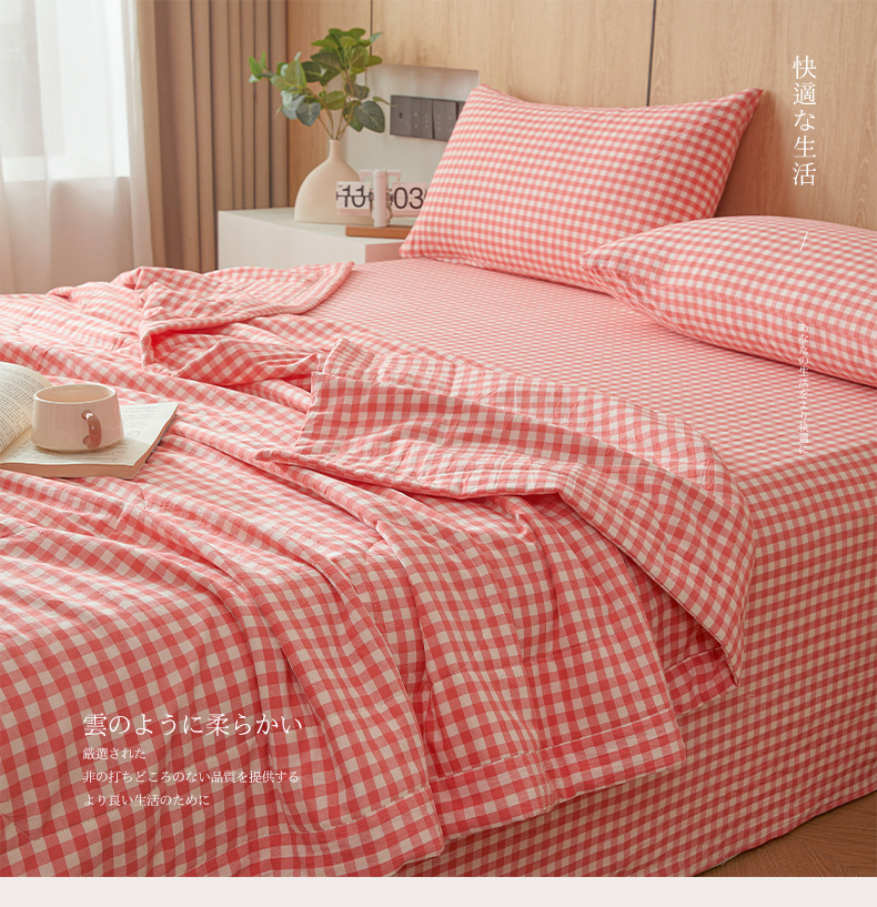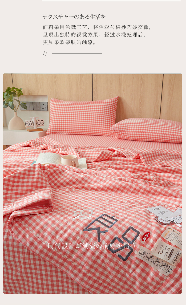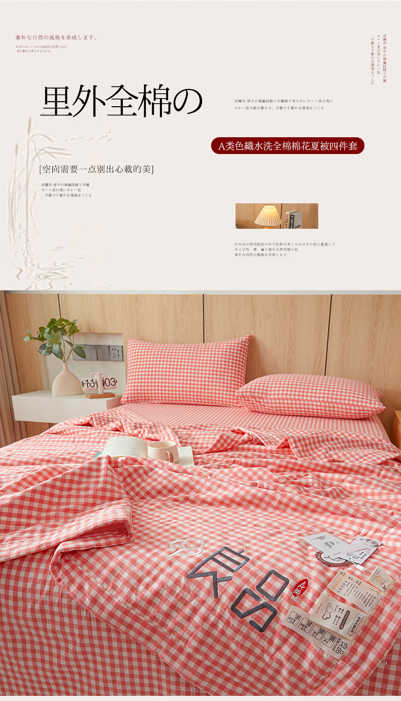 当前位置: 91家纺网 > 商品网购 > 床品套件 > 四件套 > 夏被四件套 > 悦织语 2025新款全棉水洗色织新疆棉100%棉花刺绣款无印风夏被四件套 粉小格