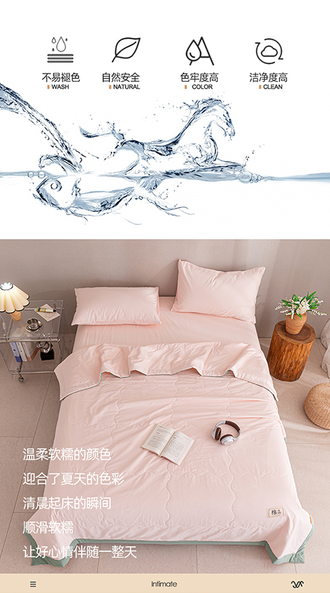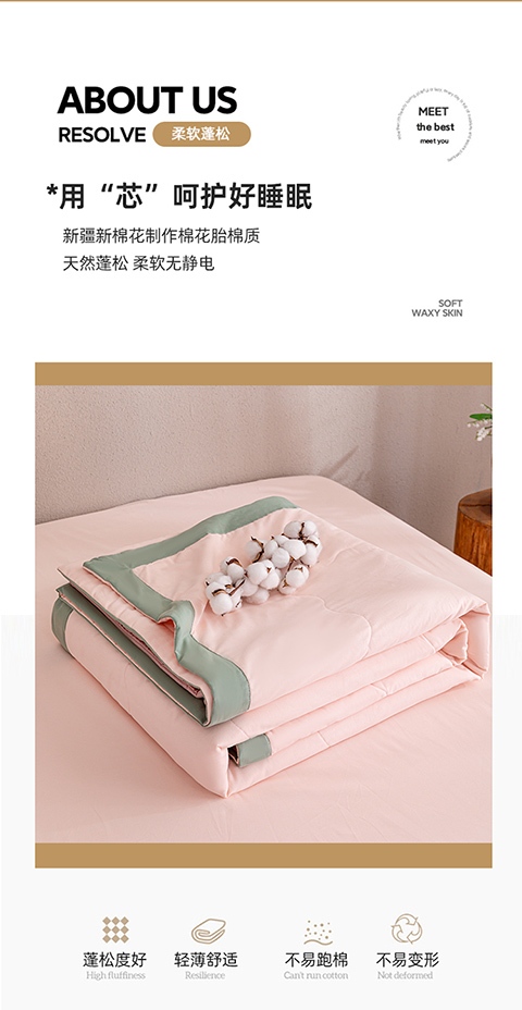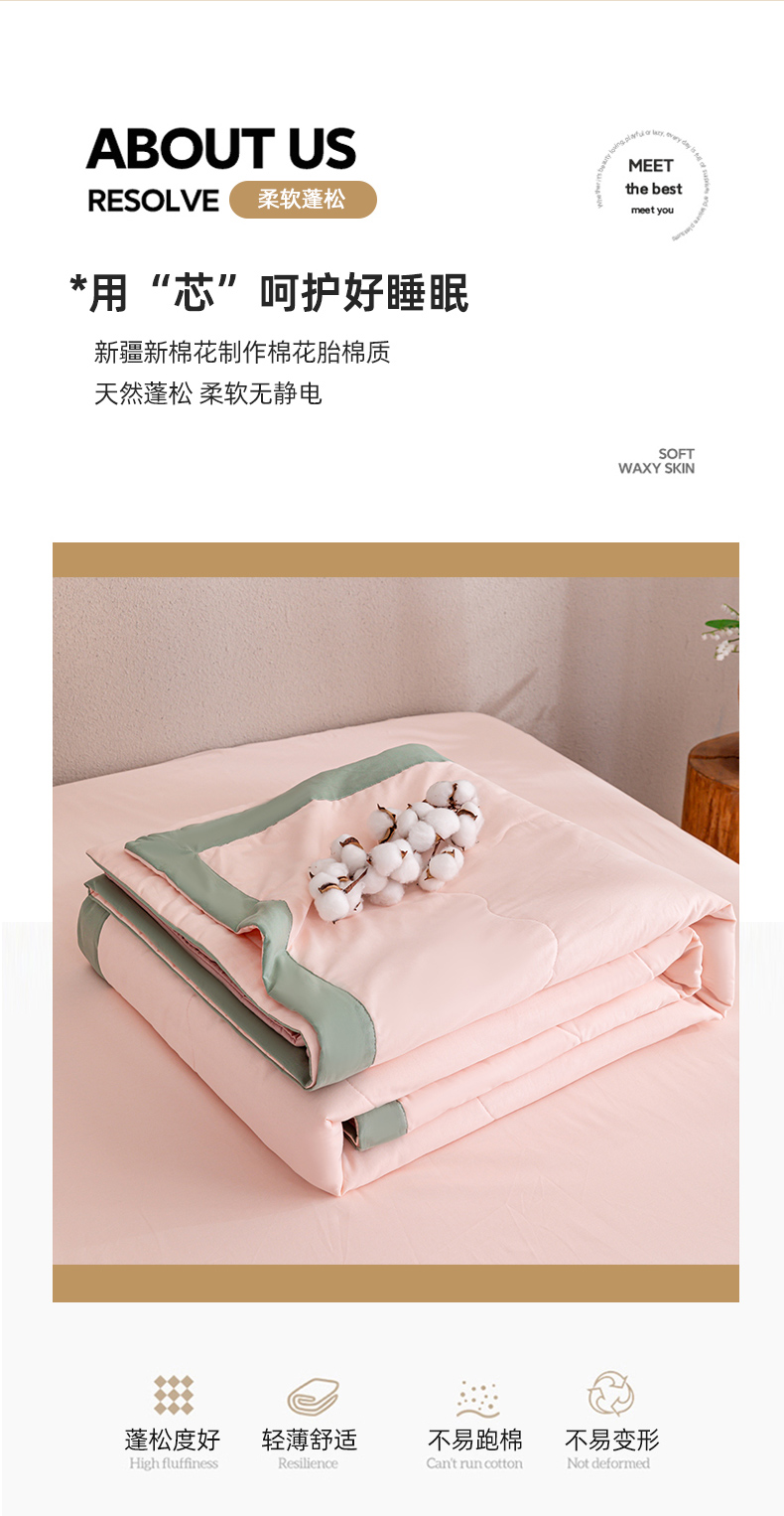 商品名称:天瑜 2024全棉夏被棉花芯纯色水洗棉夏凉被可水洗空调被 浅粉