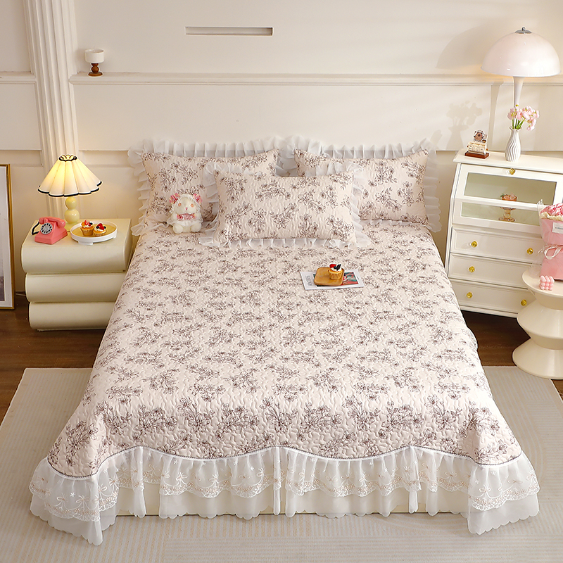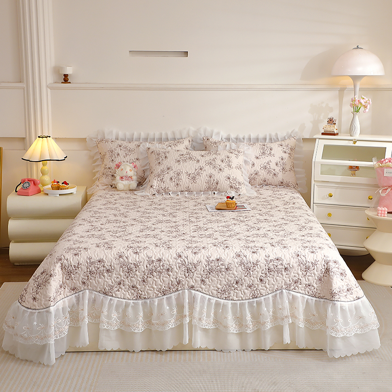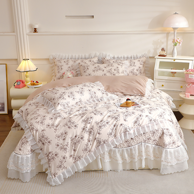 商品名称:雪夫人2025新款A类夹棉床盖床裙四件套 萱草花梦