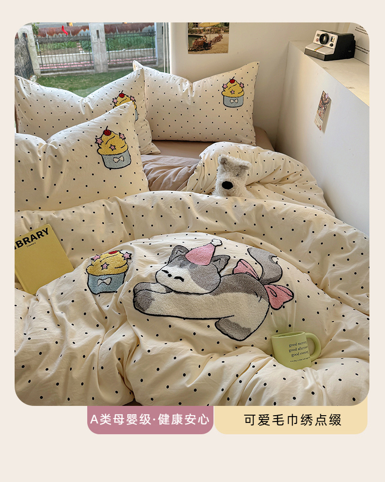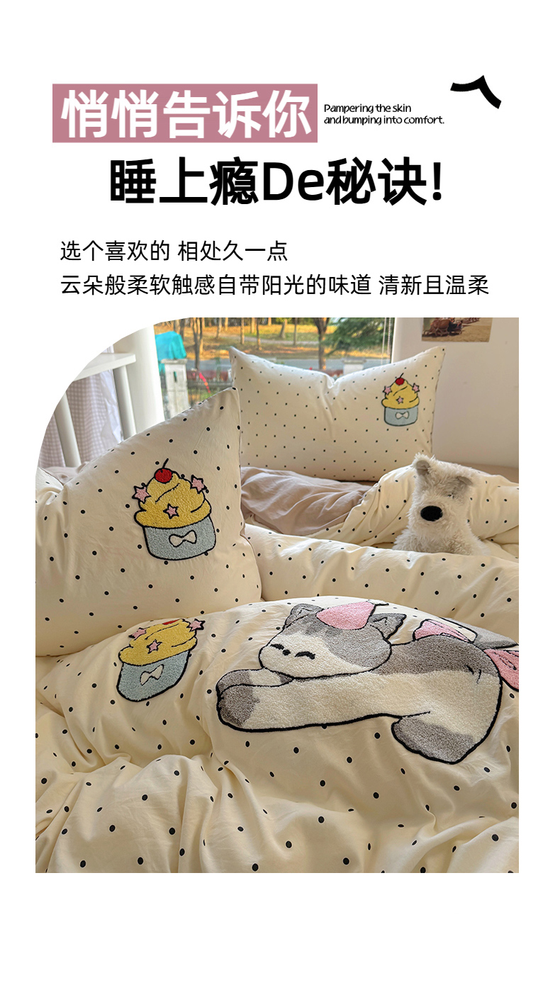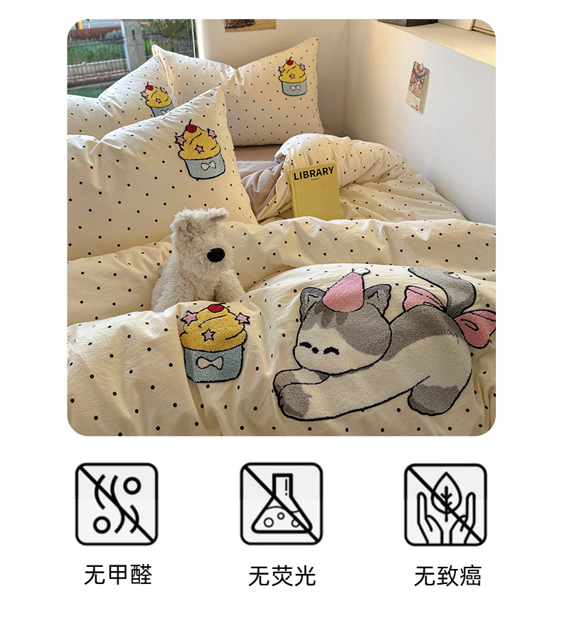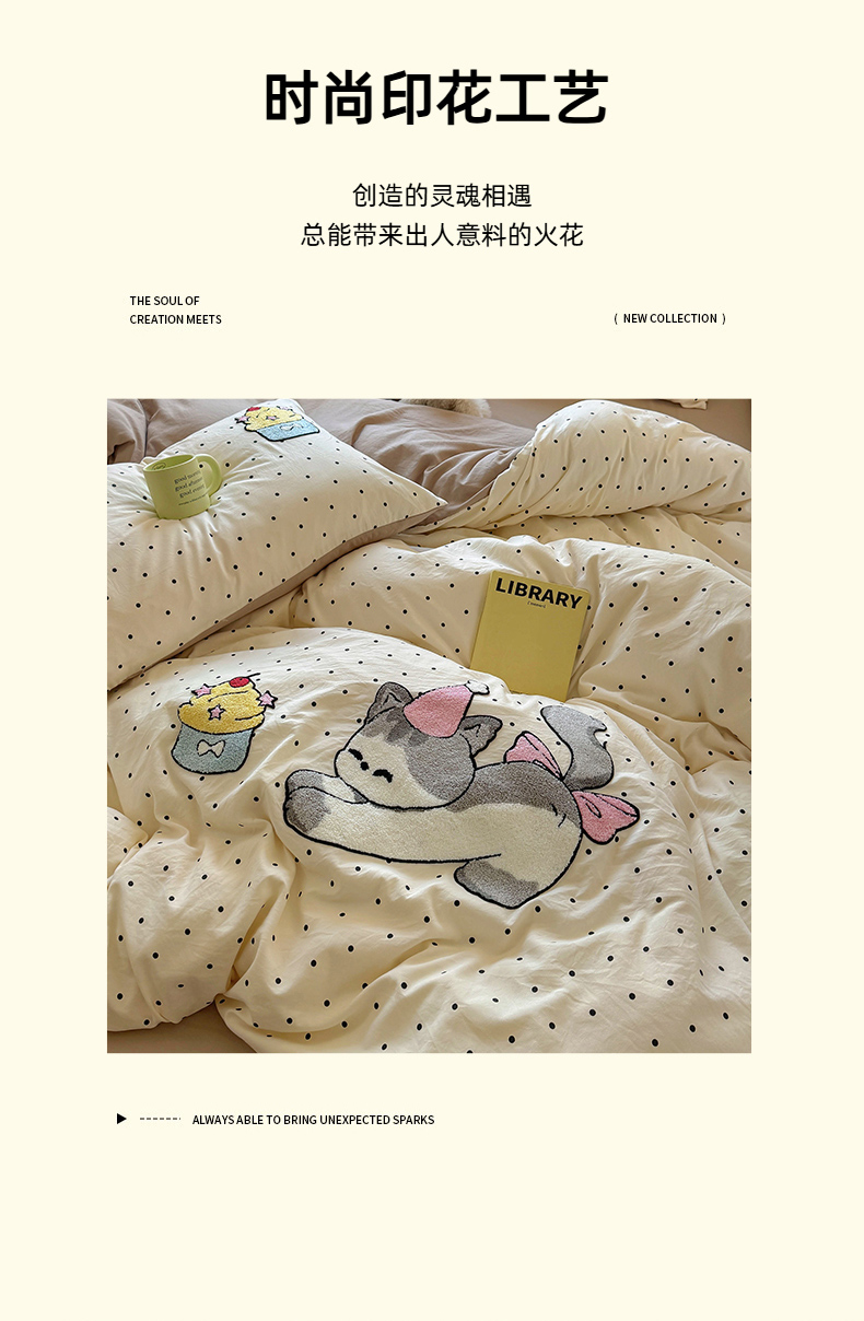 当前位置: 91家纺网 > 商品网购 > 床品套件 > 四件套 > 水洗棉四件套 > 耀达家居 2025新款A类水洗棉毛巾绣四件套 啵啵奶油猫