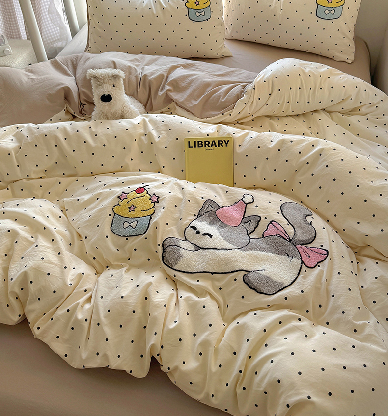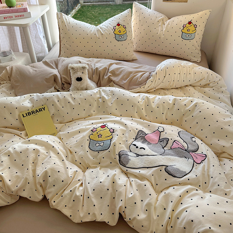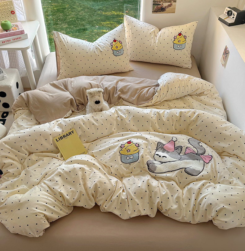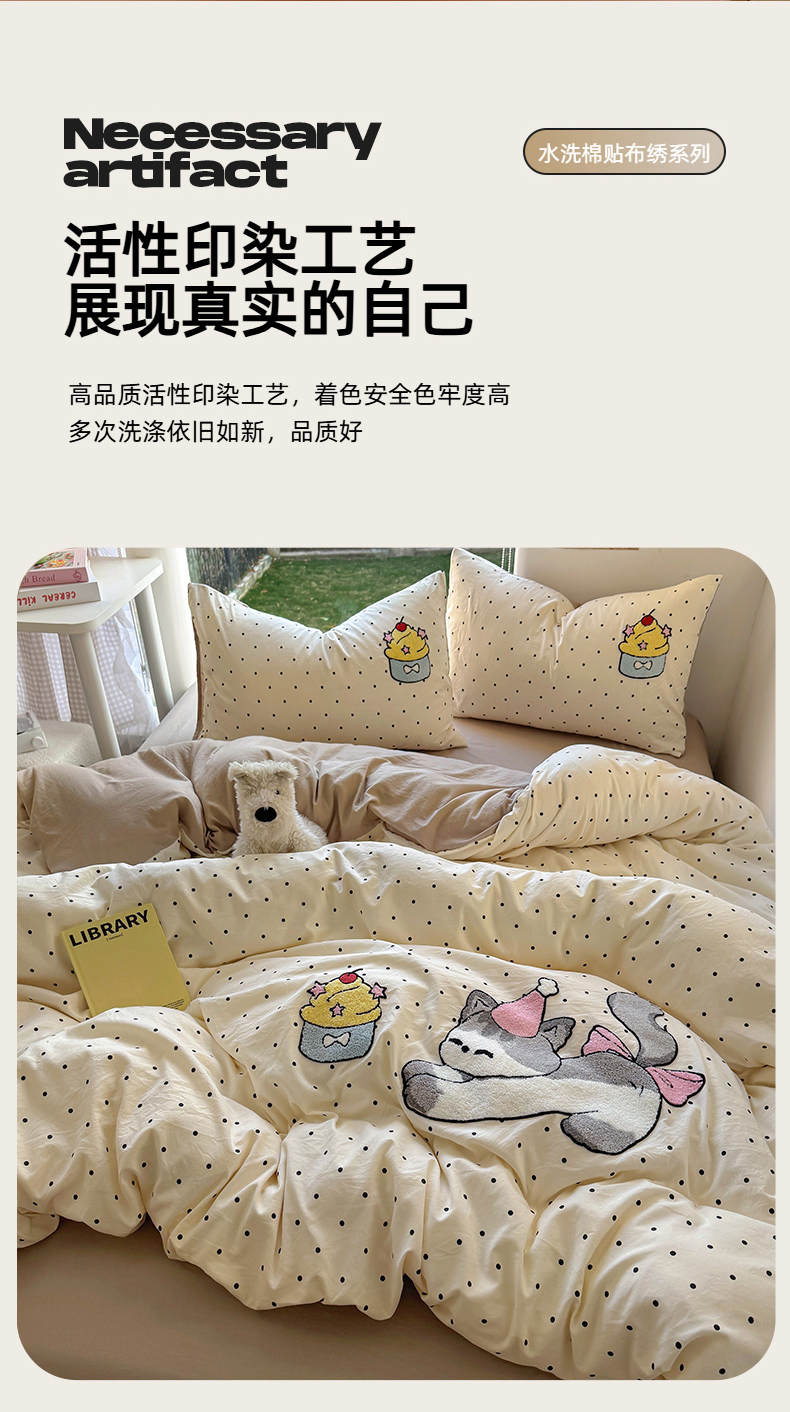 当前位置: 91家纺网 > 商品网购 > 床品套件 > 四件套 > 水洗棉四件套 > 耀达家居 2025新款A类水洗棉毛巾绣四件套 啵啵奶油猫