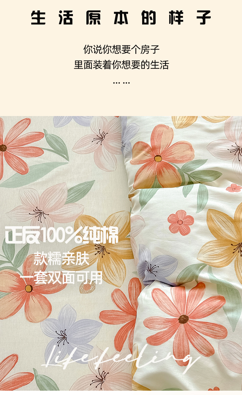 当前位置: 91家纺网 > 商品网购 > 床品套件 > 四件套 > 全棉普通四件套 > 红粉佳人家纺 2025新款12868纯棉系列全棉四件套 云裳花谷