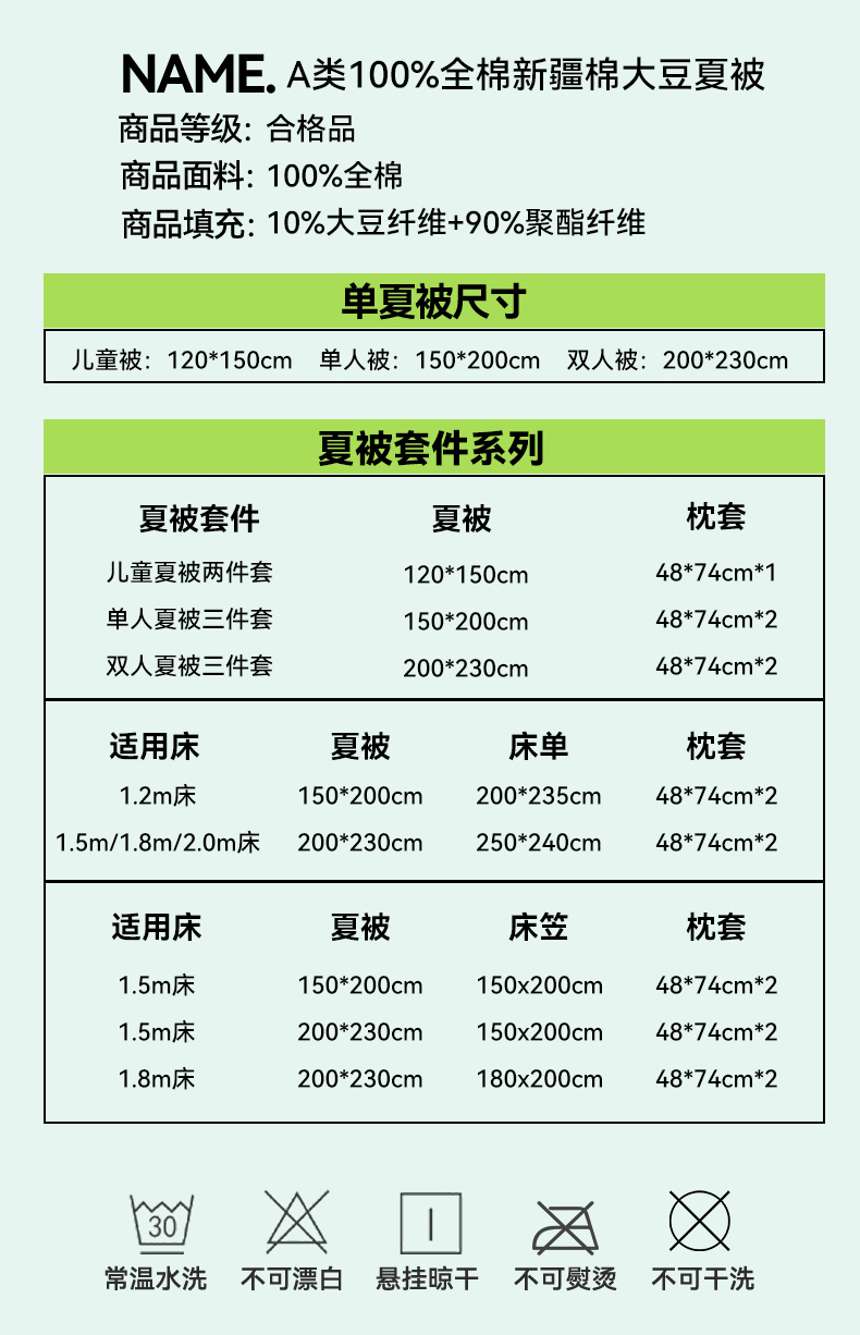 • 适用季节: 空调被/夏凉被