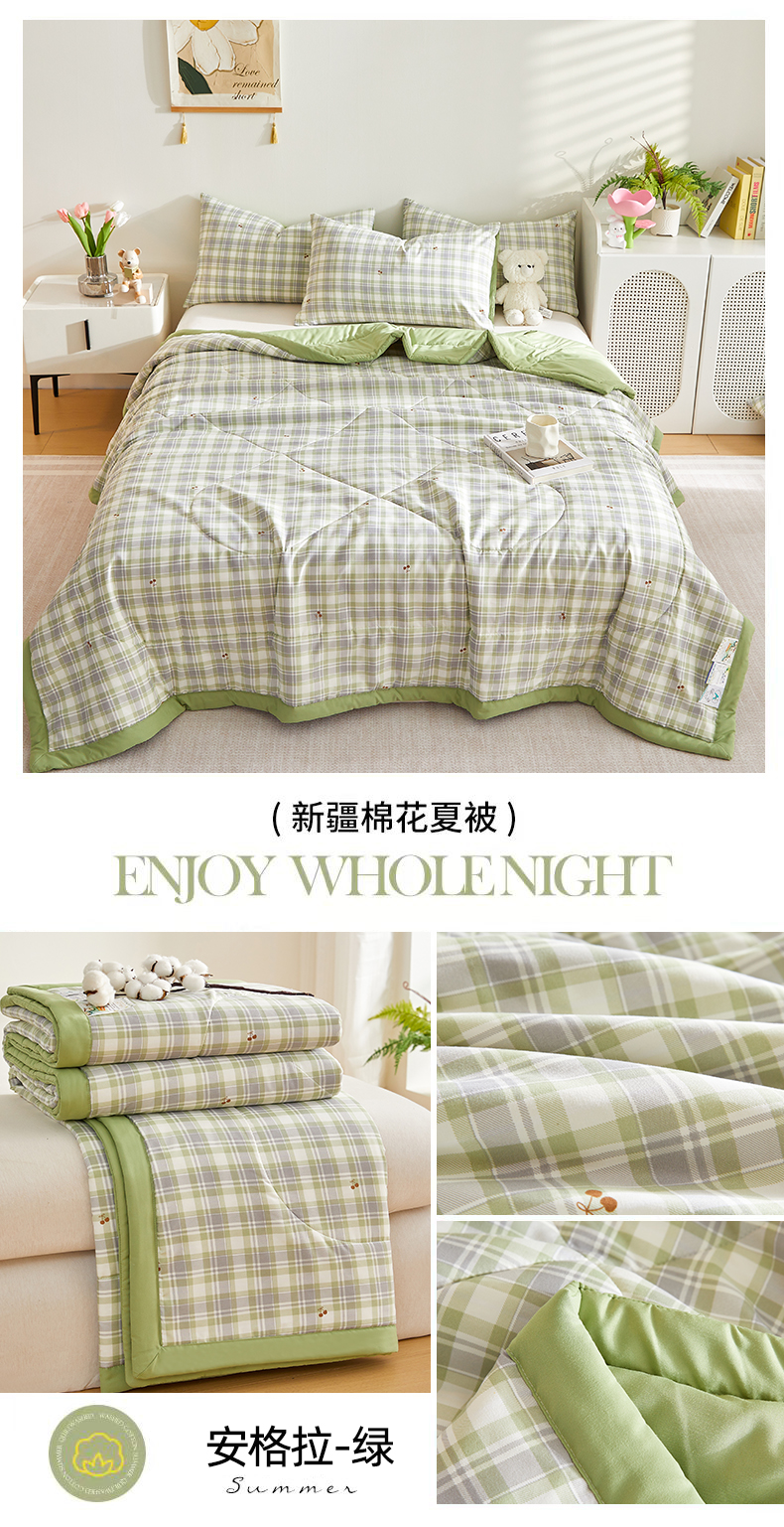 商品名称:海洋家纺 2025款水洗棉纯棉花夏凉被全棉花印花夏被空调被薄被子 安格拉绿