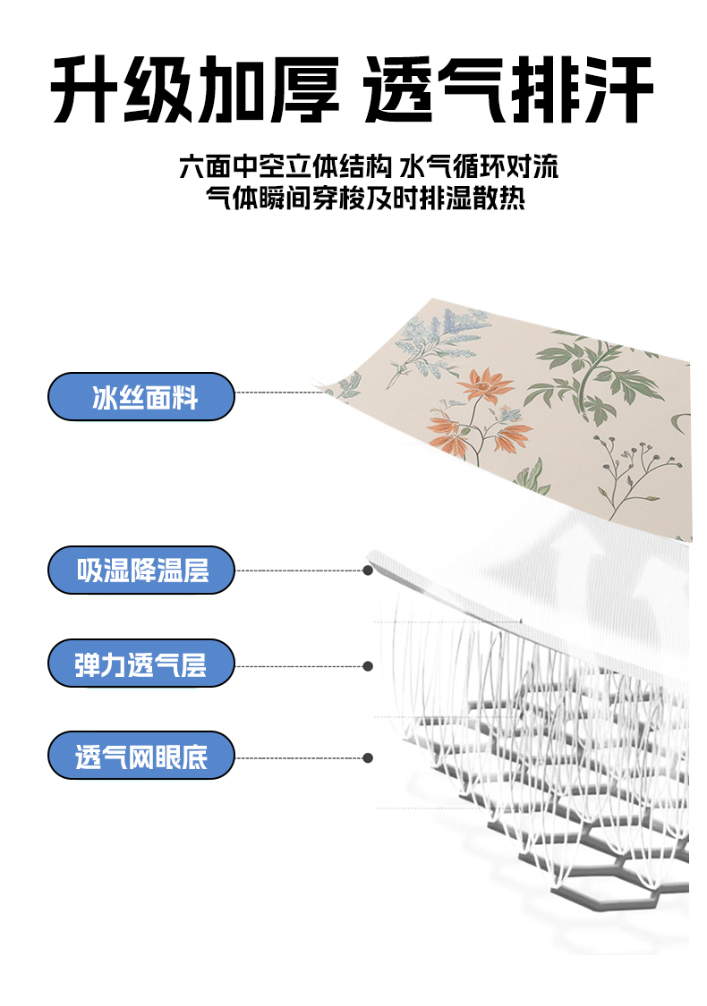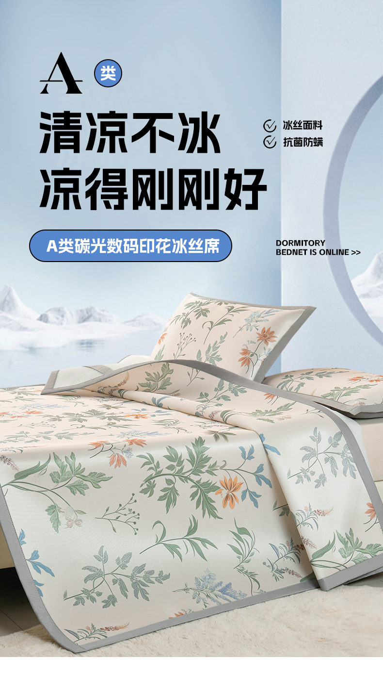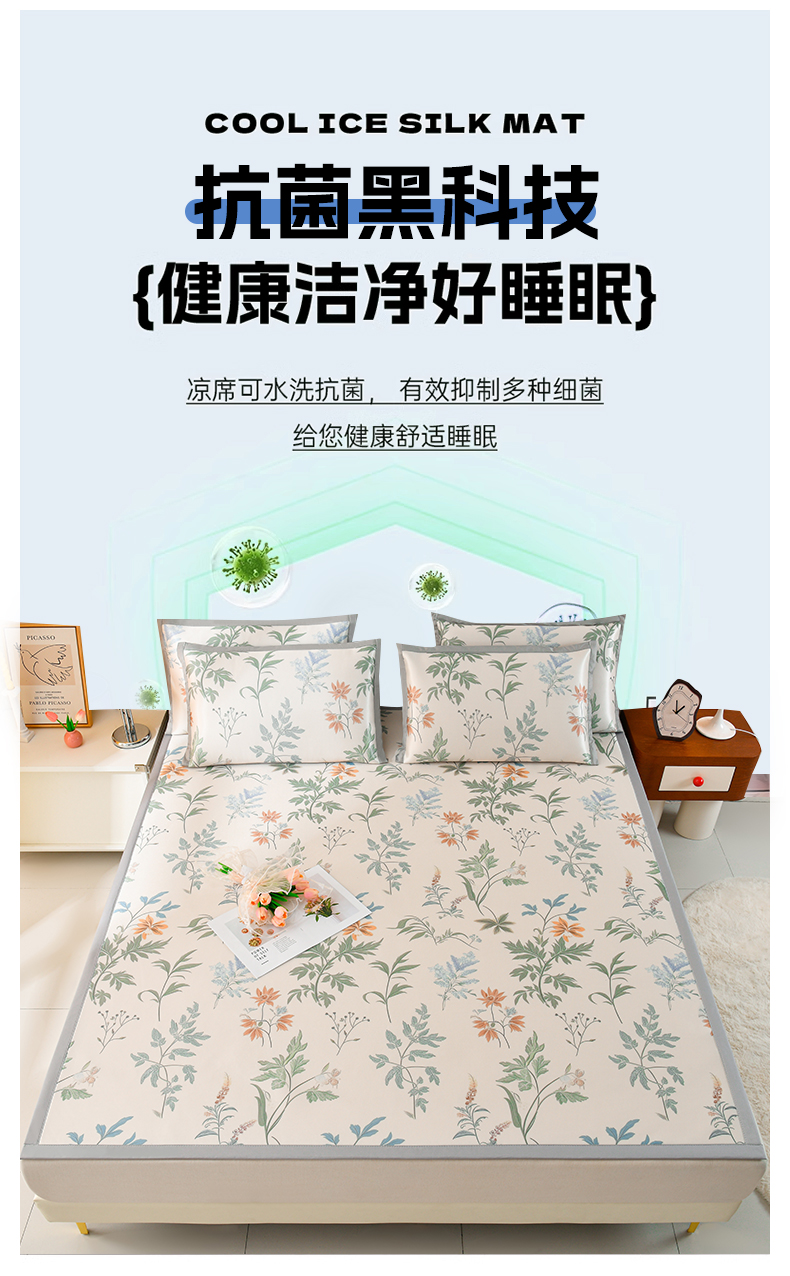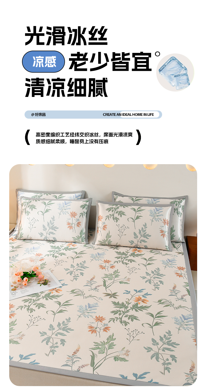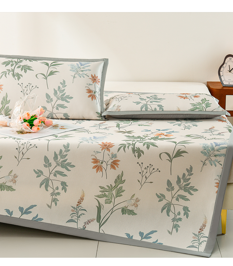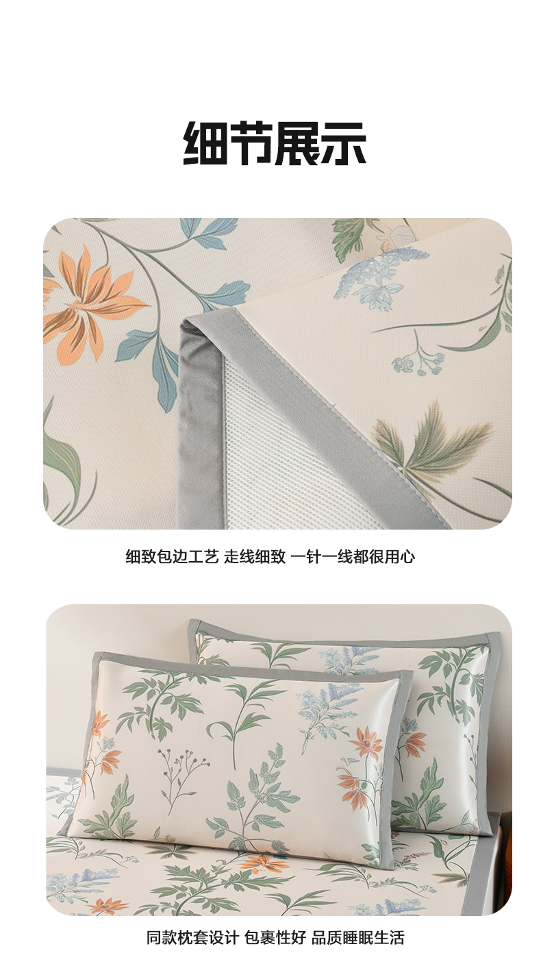 商品名称:简一 2025新款A类碳光印花数码冰丝凉席系列-床单款 花间细雨