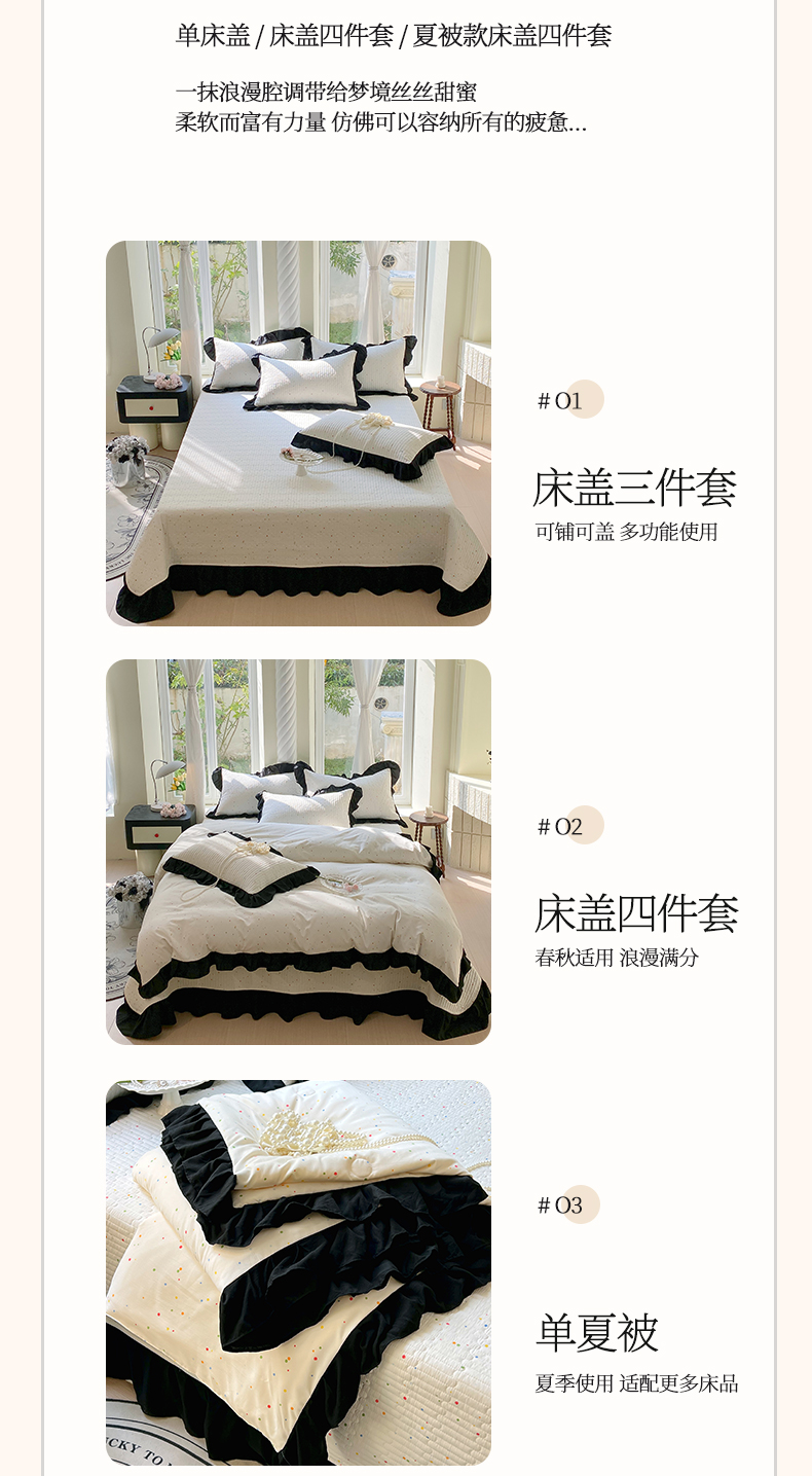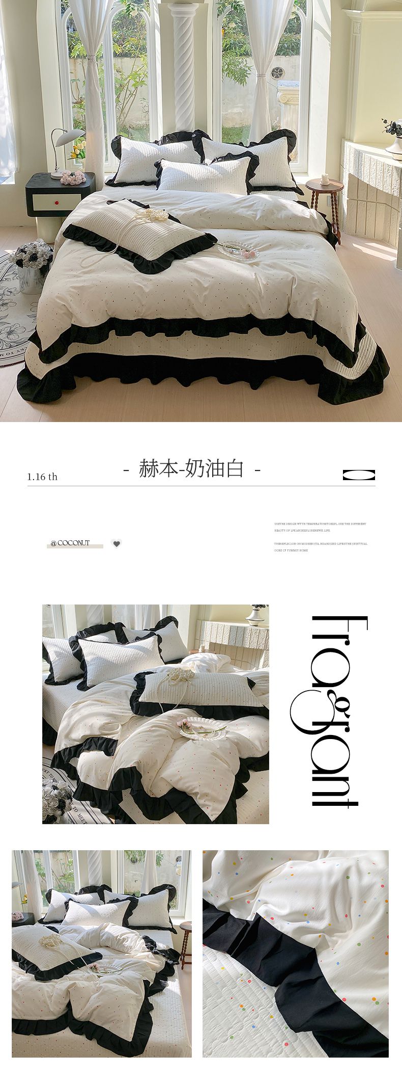 商品名称:八方汇(一户被芯生活馆) 2025新款水洗棉花边夏被款夏凉被空调被床盖四件套 赫本-奶油白