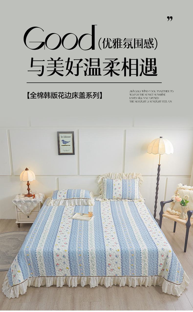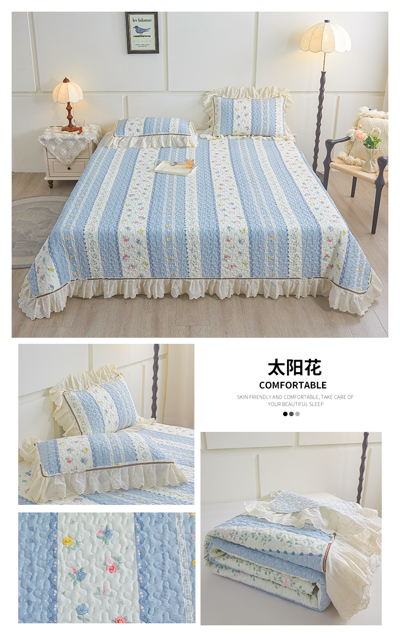 商品名称:恒爱家纺 2025新款全棉纯棉韩版印花床盖三件套 太阳花