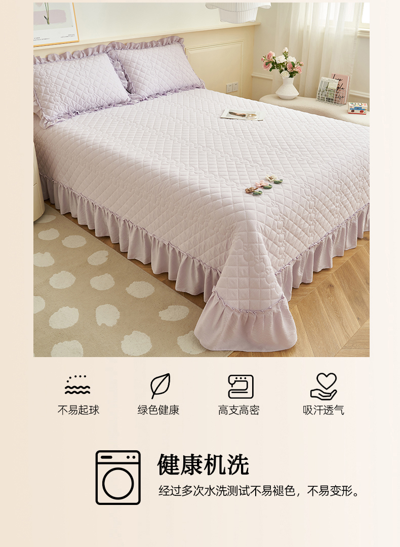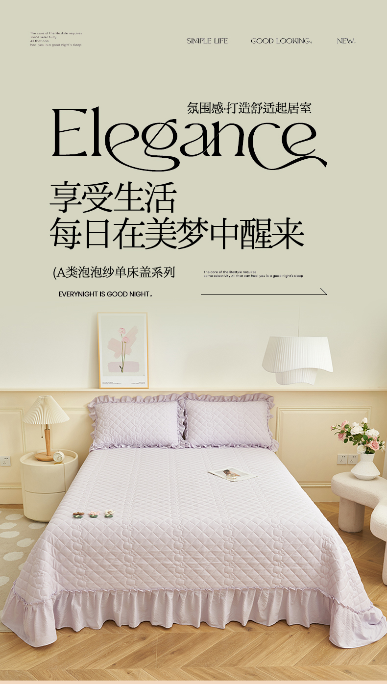 商品名称:恒爱家纺 2025新款A类泡泡纱床盖-杜鹃 浪漫紫