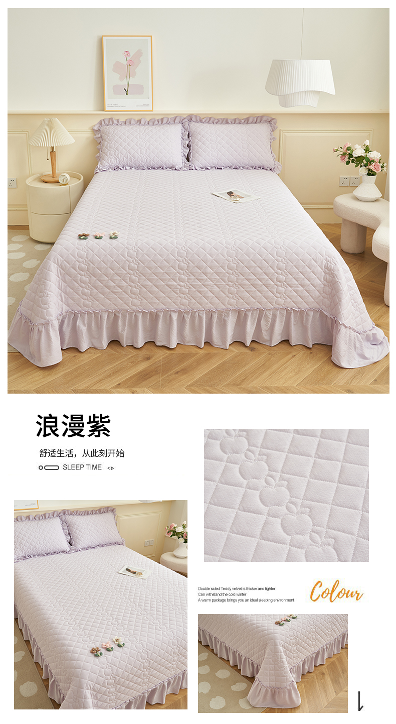 (总)恒爱 2022秋冬水晶绒翩翩花舞夹棉床裙四件套,大红色,豆沙红,橄榄绿,公主粉,桔色,咖啡色,孔雀绿,拉菲红,罗兰紫,玫红色,美人玉,米白色,米驼色,抹茶绿,浅灰色,紫色
