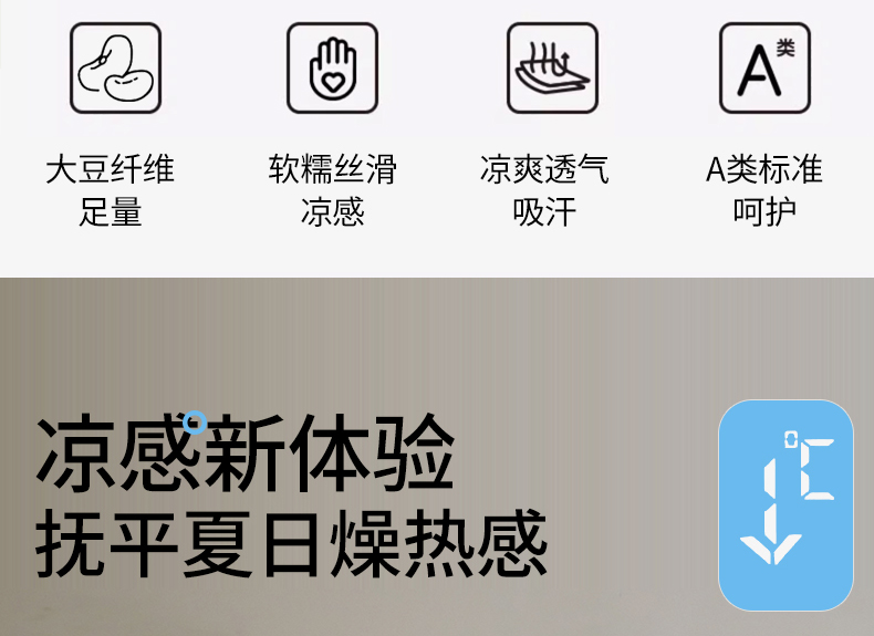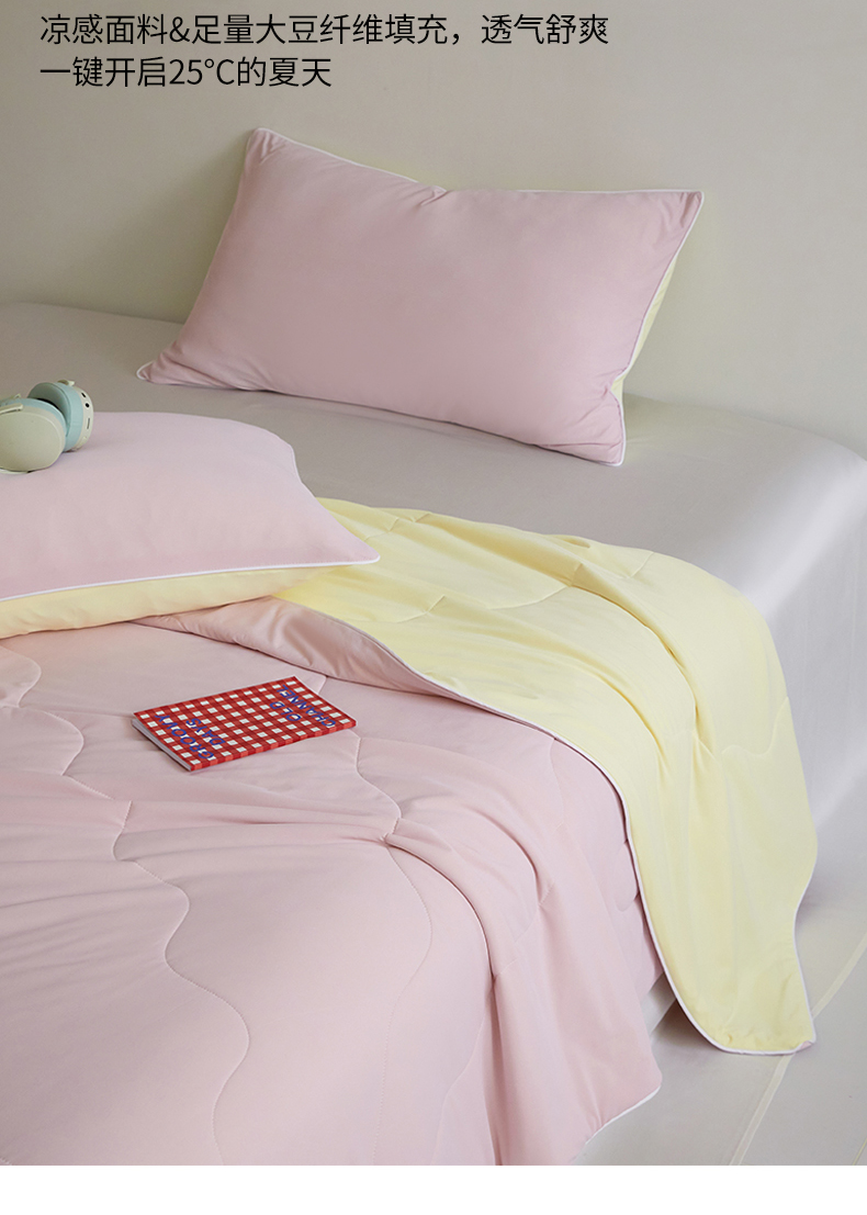 商品名称:头等舱 2025新款4.0版凉感A类锦氨(165克)55大豆抗菌夏被配礼盒 浅豆沙拼米黄