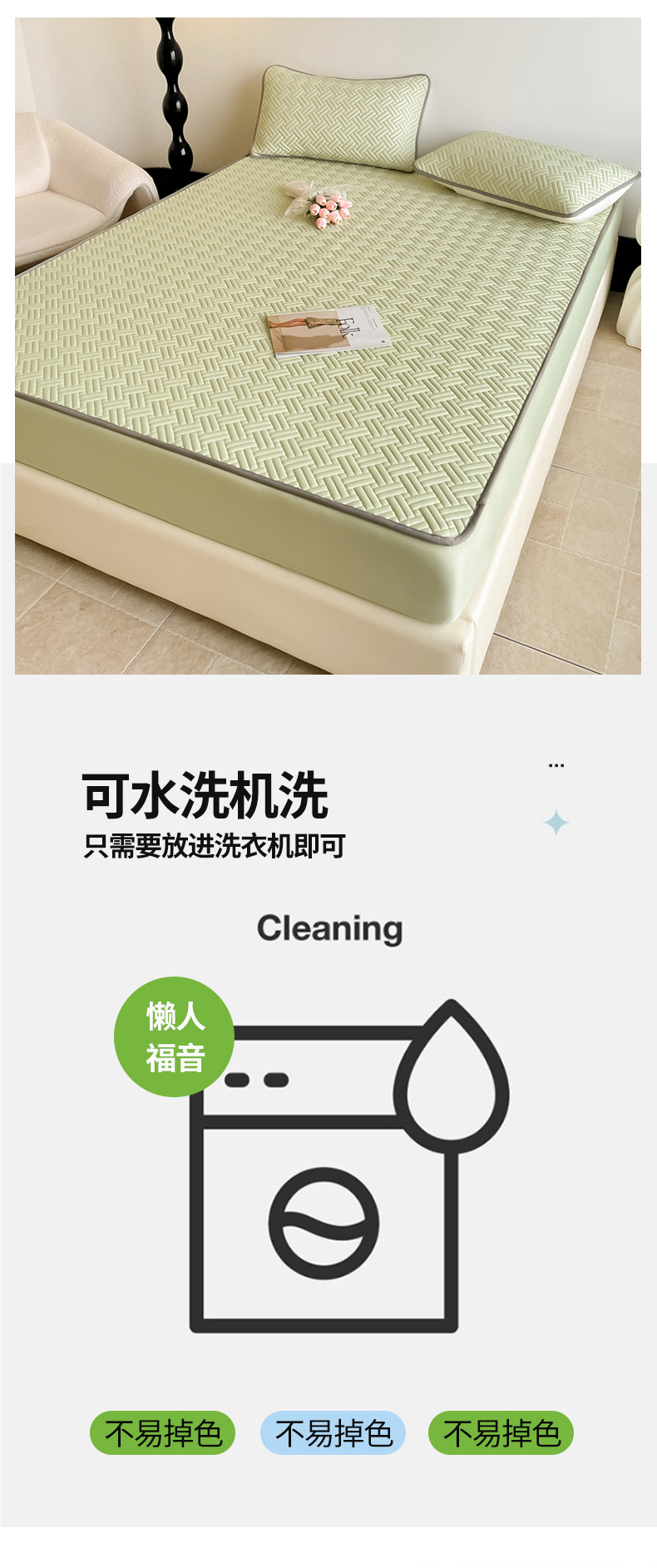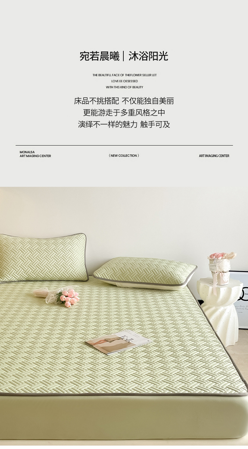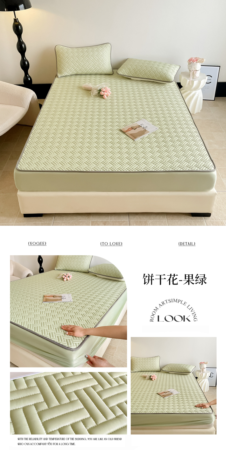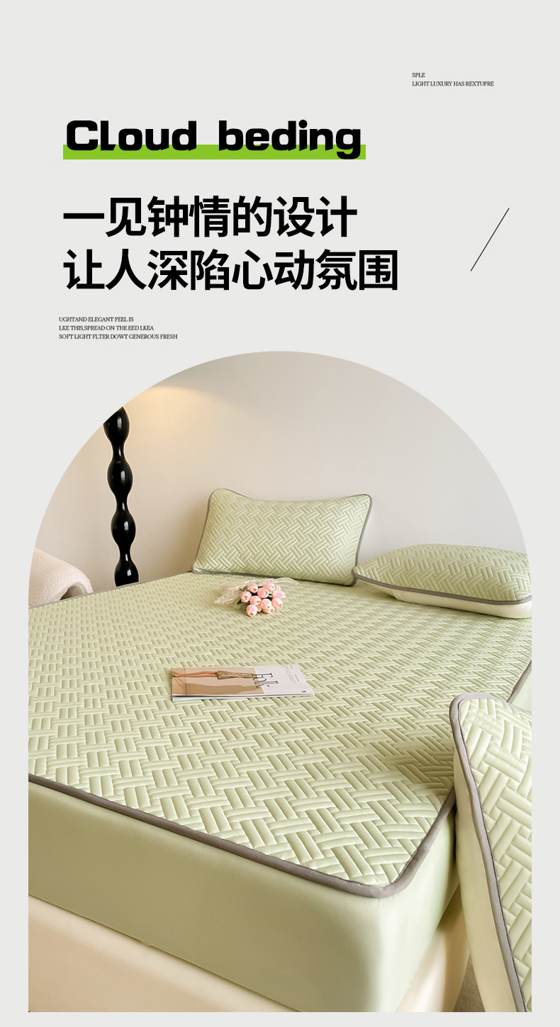 • 91家纺网 家纺一手货源 找家纺 欧邦2025新款纯色加厚乳胶床笠三件套 饼干花-果绿