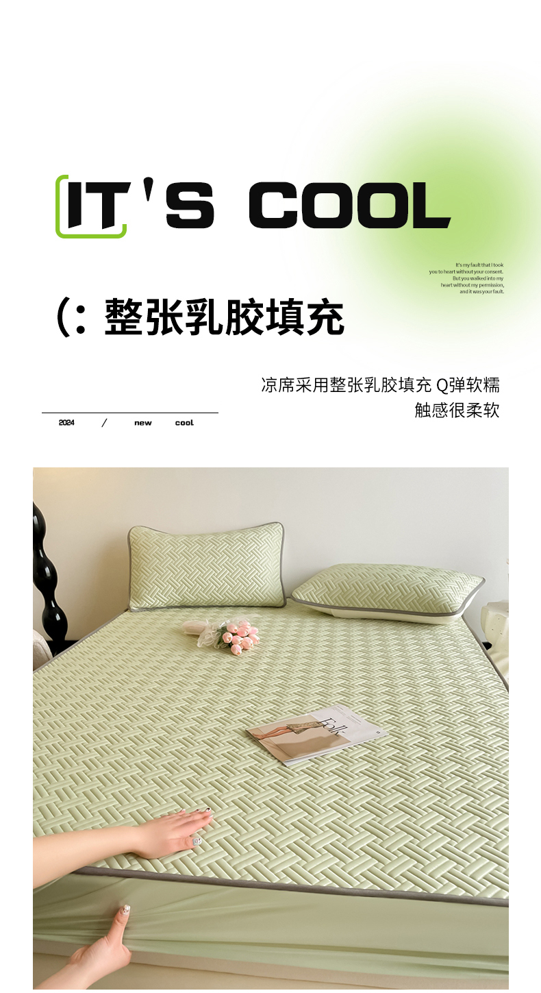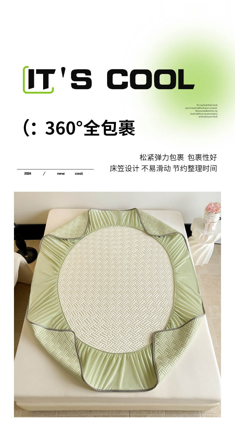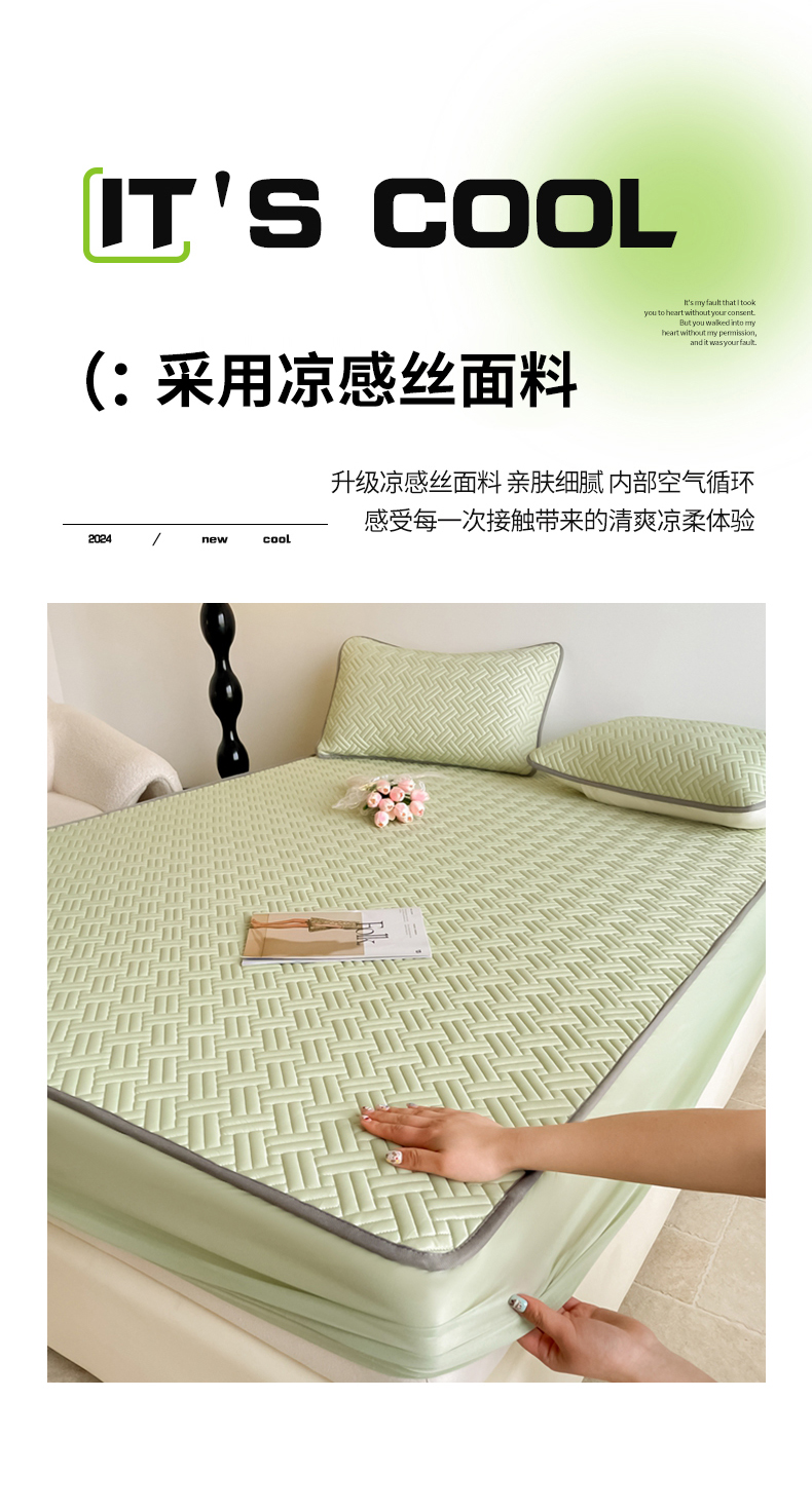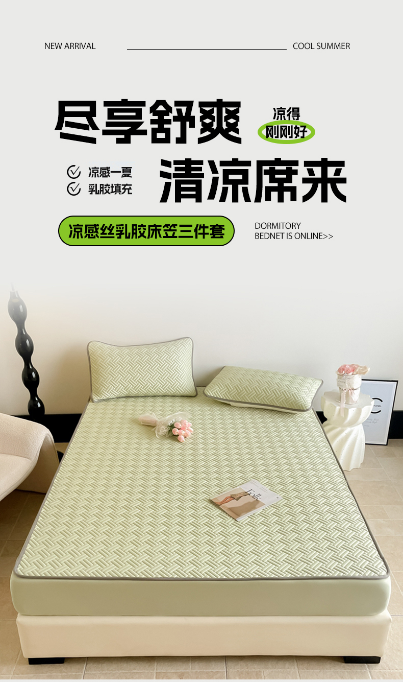 • 91家纺网 家纺一手货源 找家纺 欧邦2025新款纯色加厚乳胶床笠三件套 饼干花-果绿