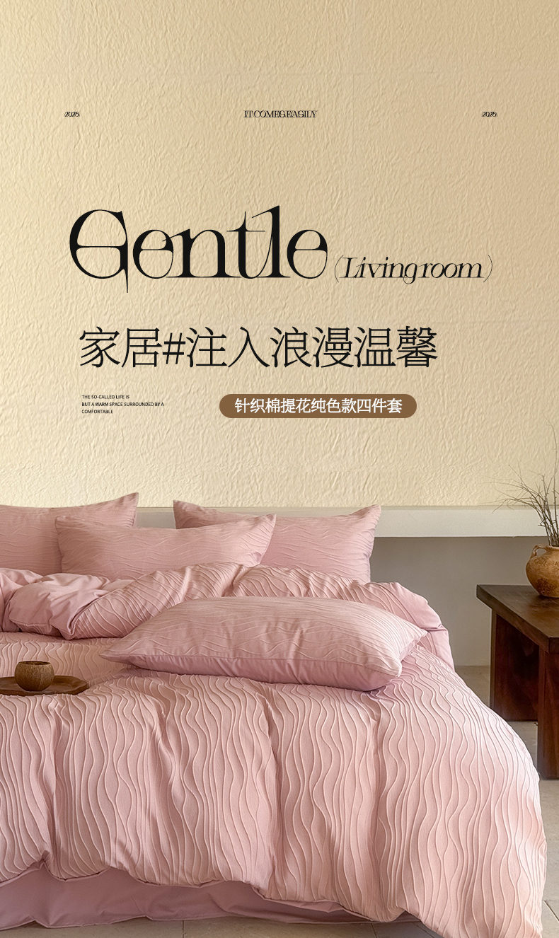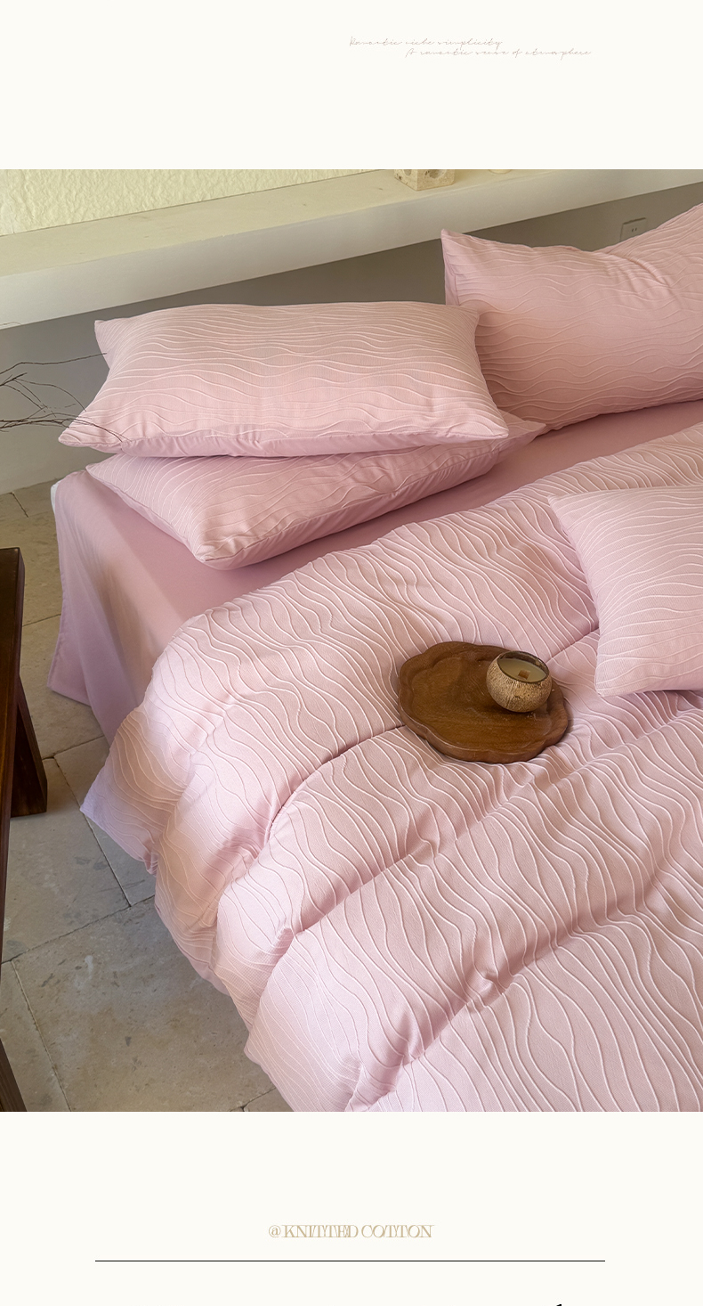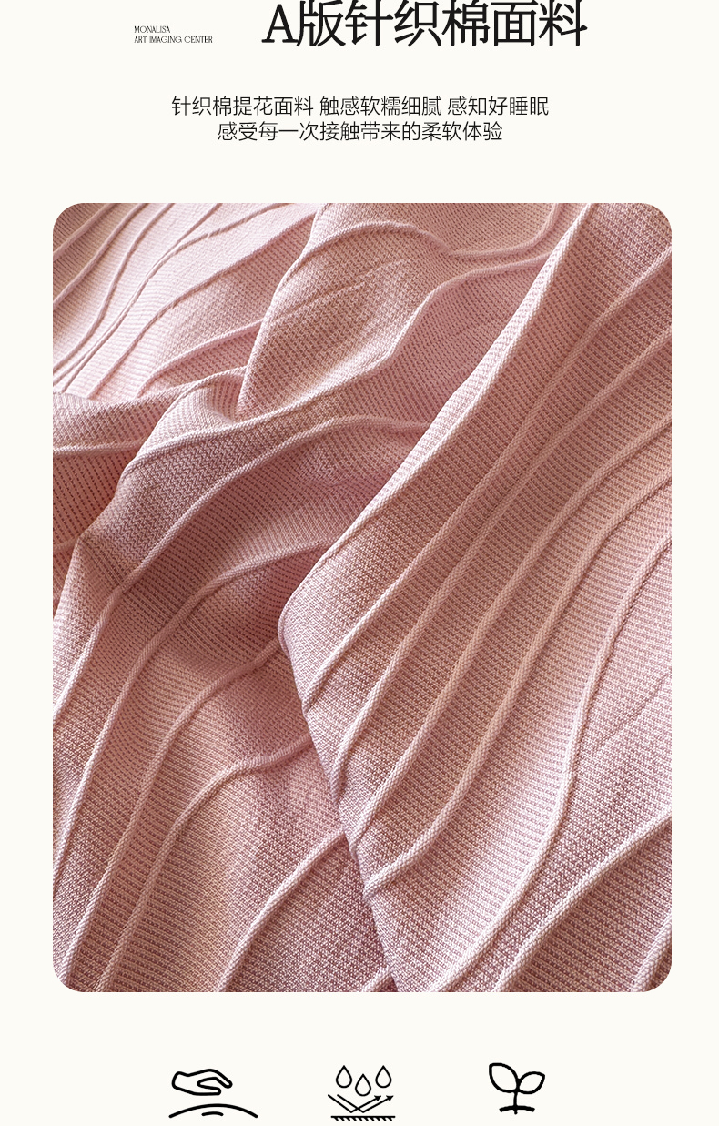 当前位置: 91家纺网 > 商品网购 > 床品套件 > 四件套 > 针织棉四件套 > 豪美鑫2025新款针织提花四件套 莫妮卡-少女粉