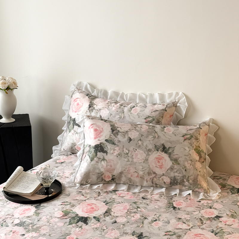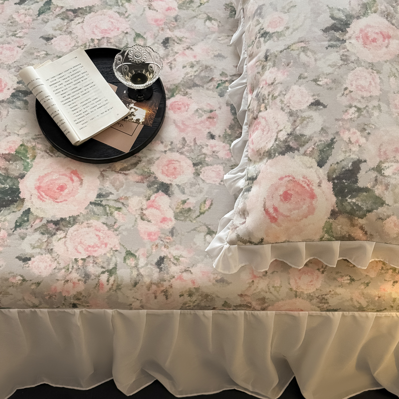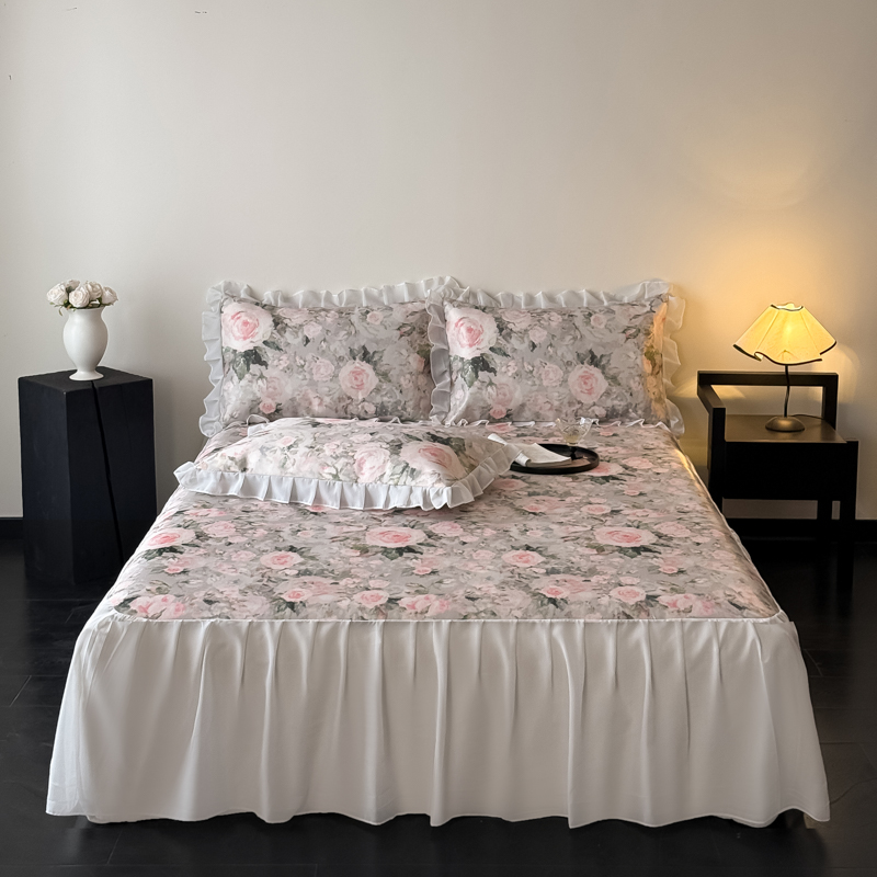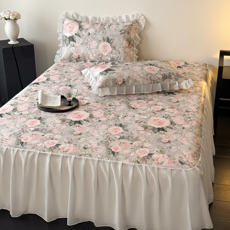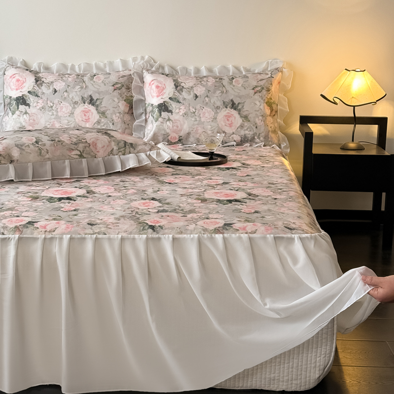 懒猫家纺 2025春夏新款高精密800D数码印花冰丝雪纺床裙款凉席 玉瑾