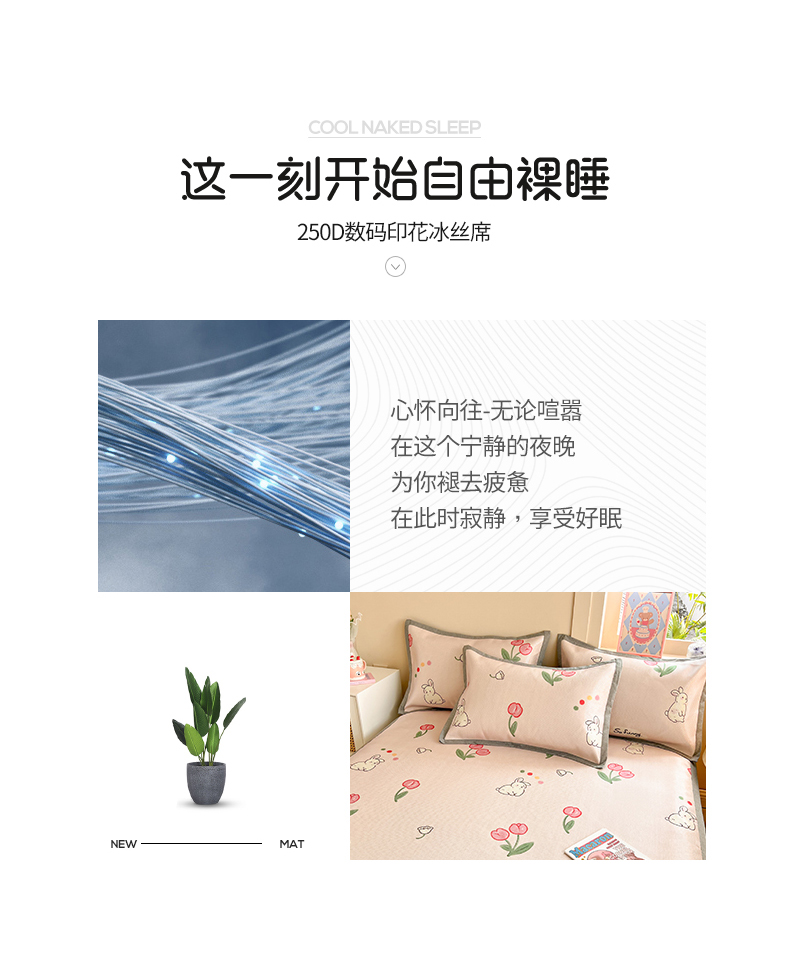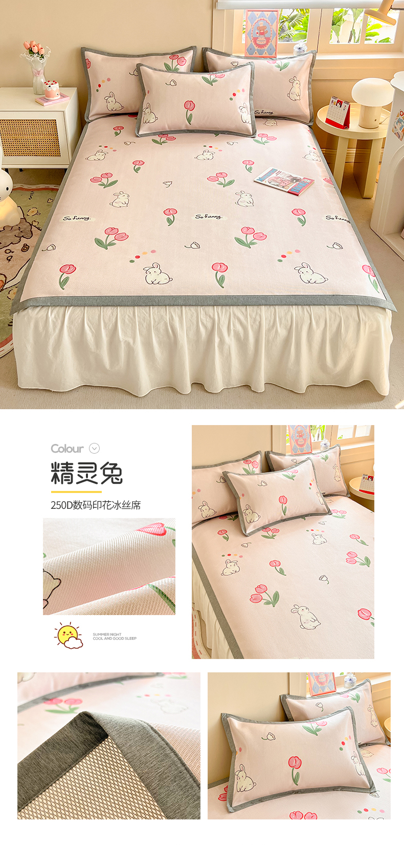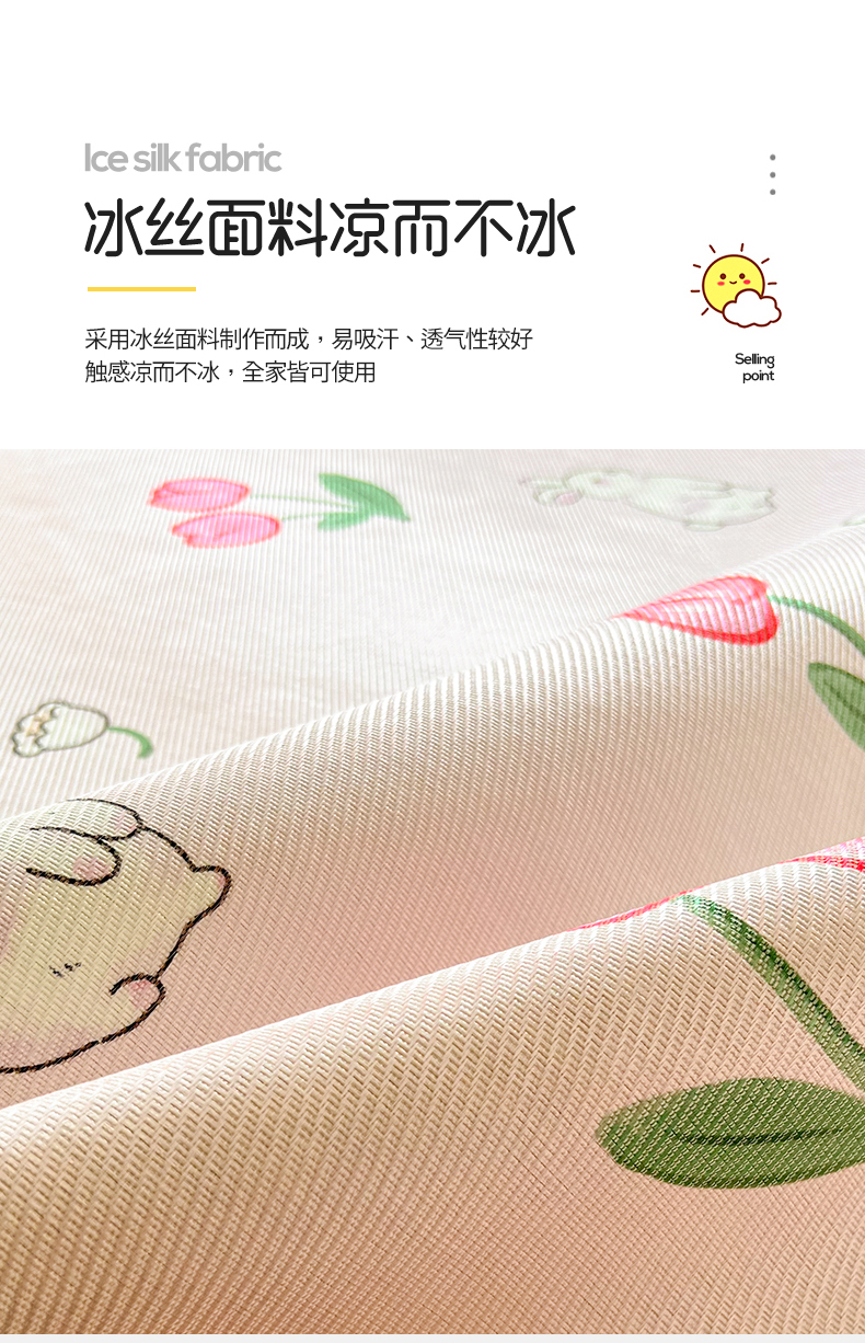 商品名称:懒猫家纺 2025春夏新款250D数码印花冰丝席凉席席子 精灵兔