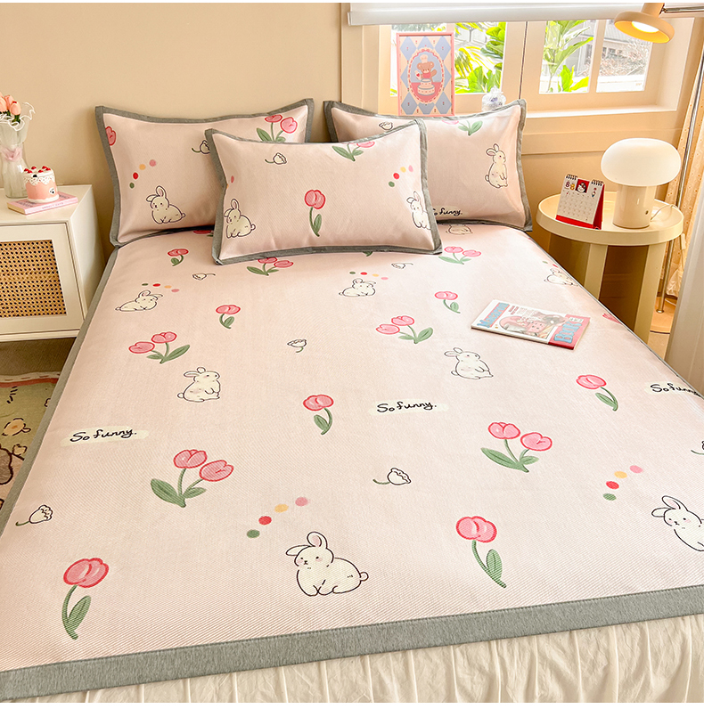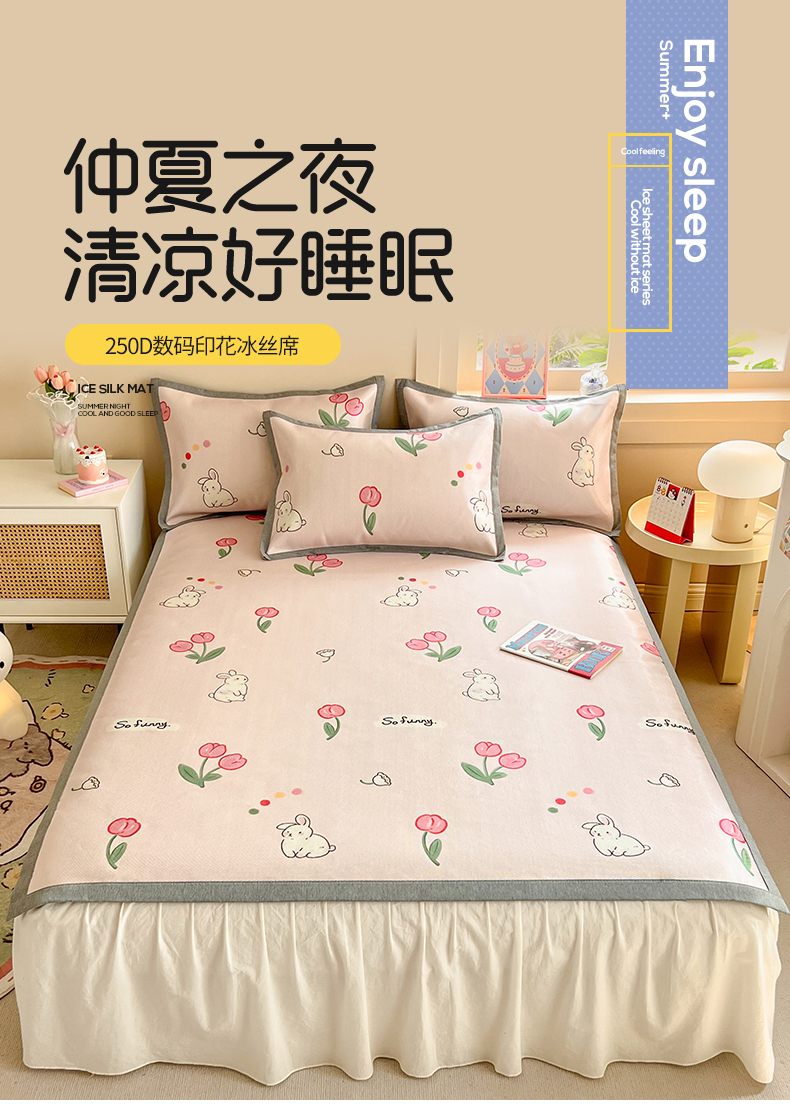 懒猫家纺 2025春夏新款250D数码印花冰丝席凉席席子 精灵兔