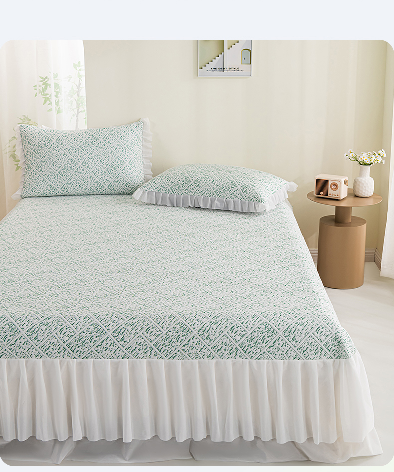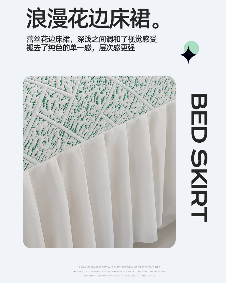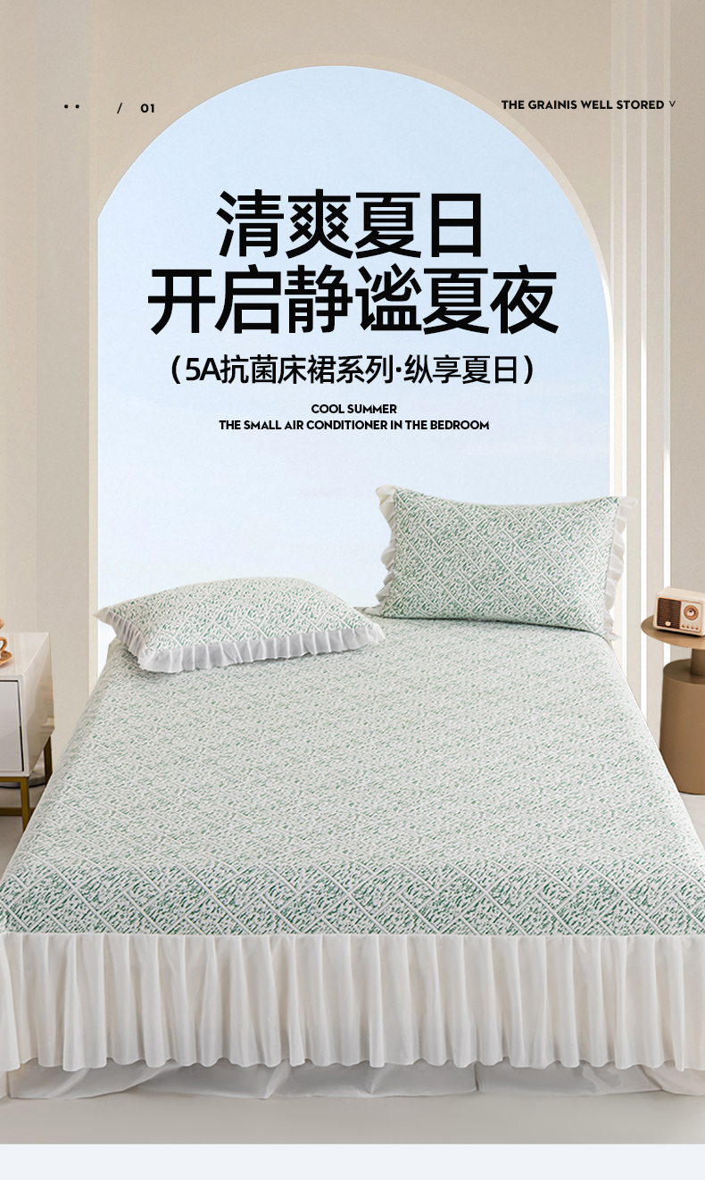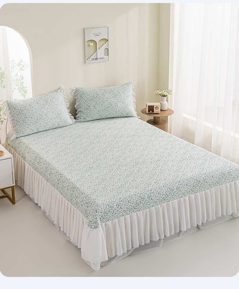 商品名称:叠派家纺 2025新款5A抗菌雅致床裙款三件套 雅致床裙款-冰豆绿