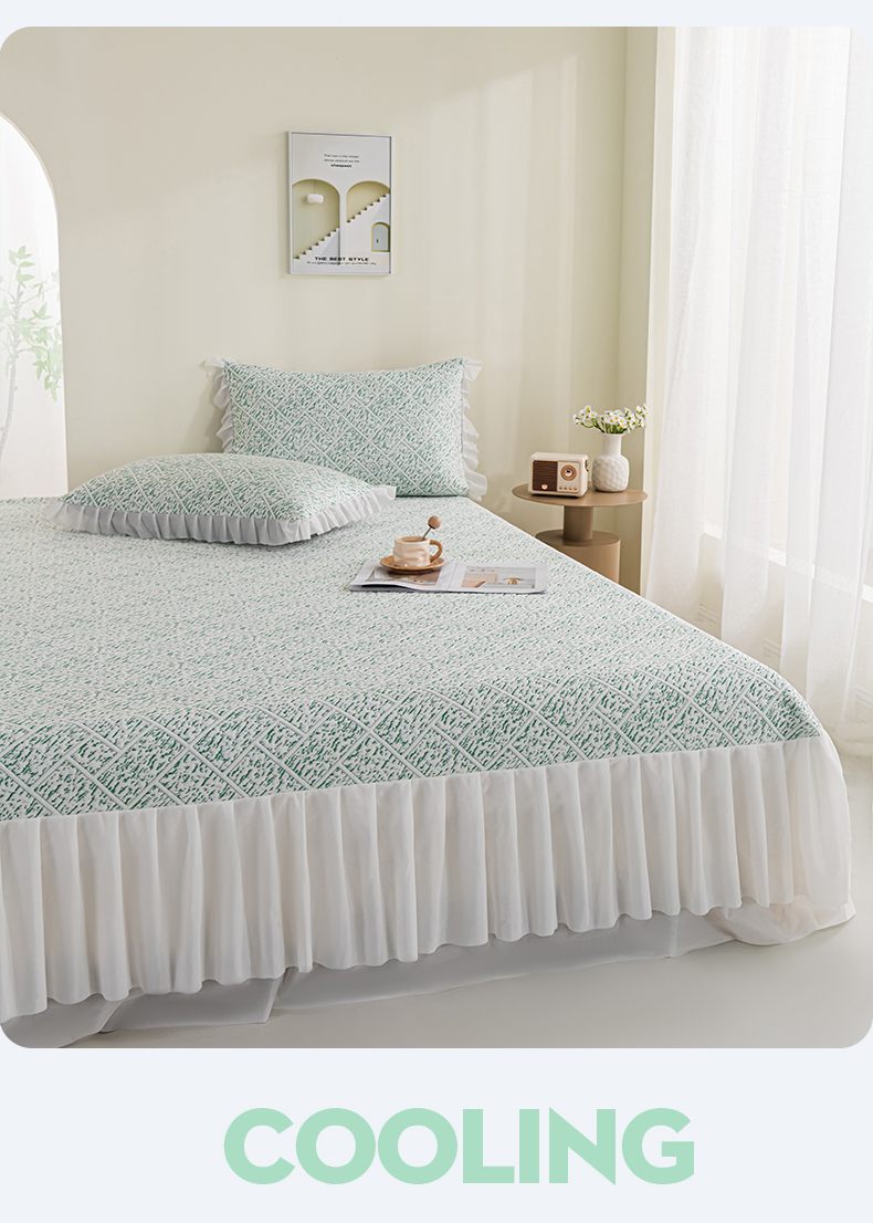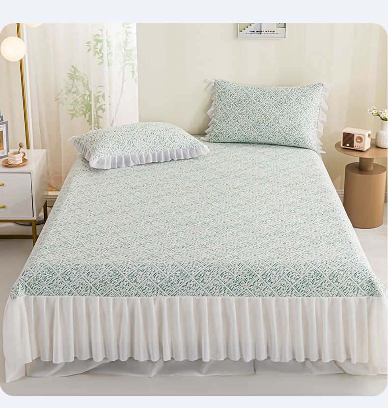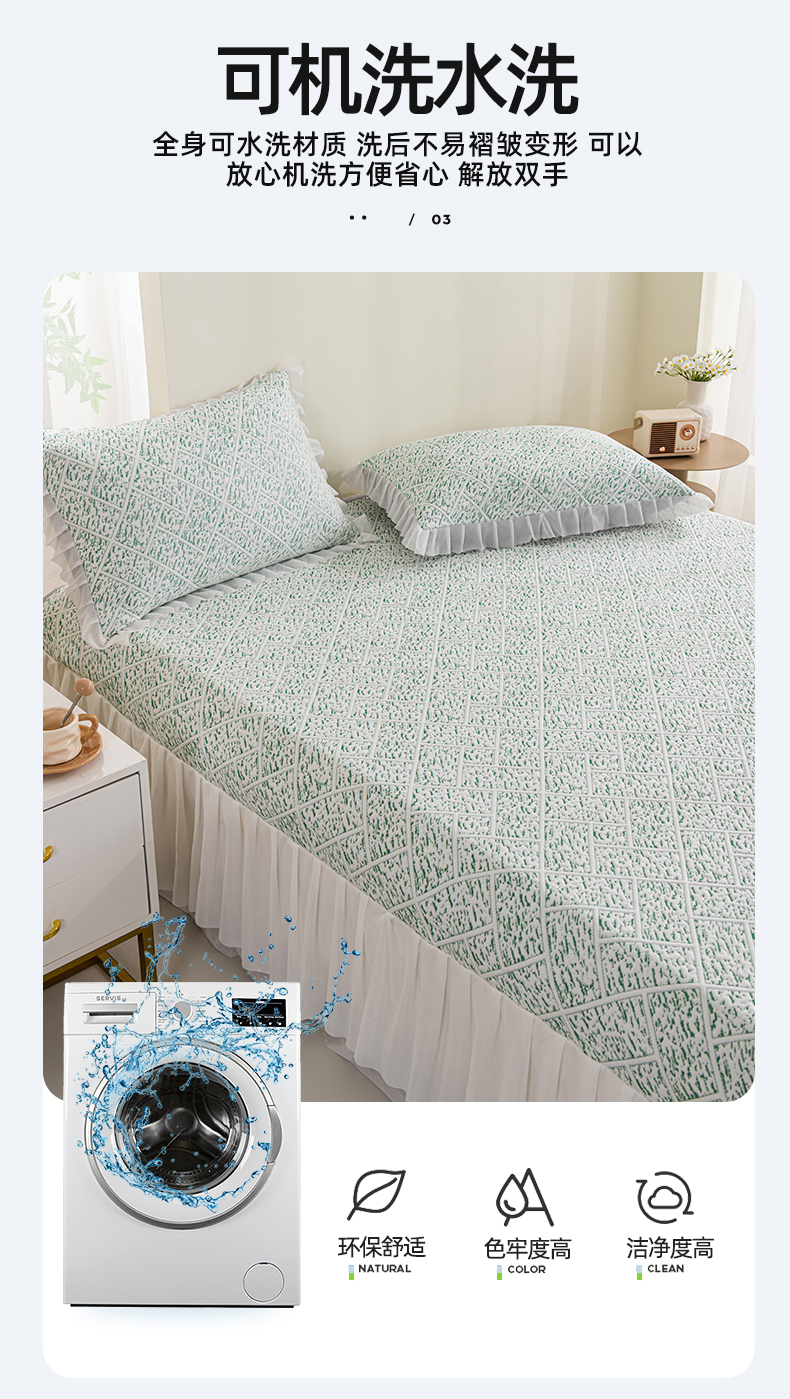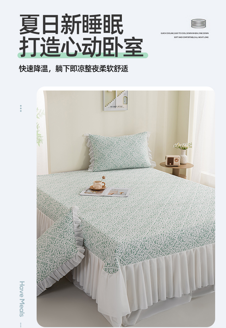 商品名称:叠派家纺 2025新款5A抗菌雅致床裙款三件套 雅致床裙款-冰豆绿