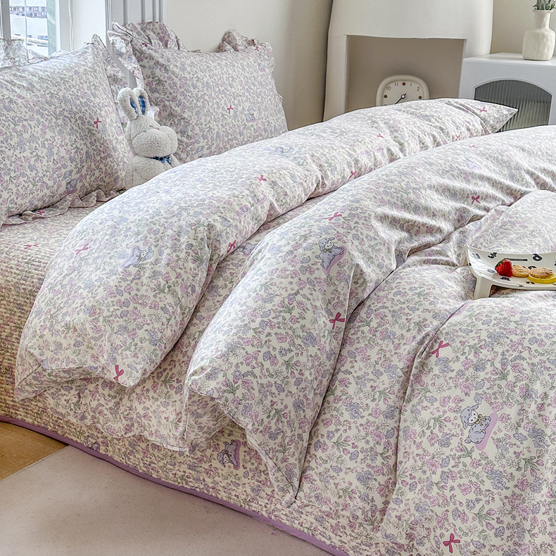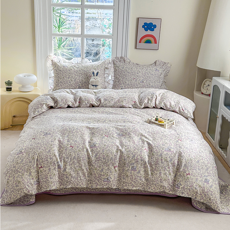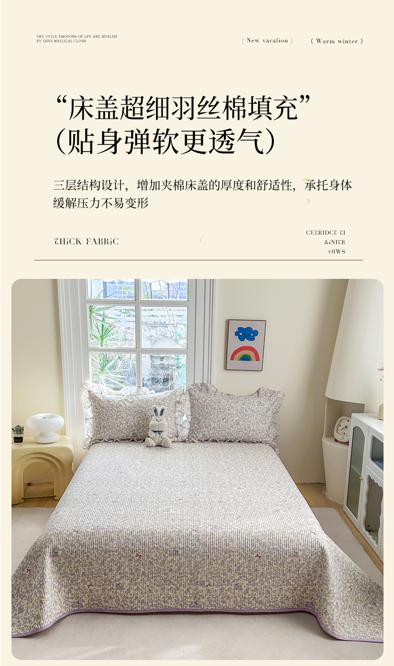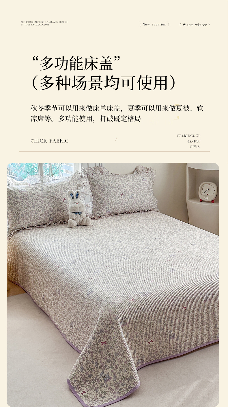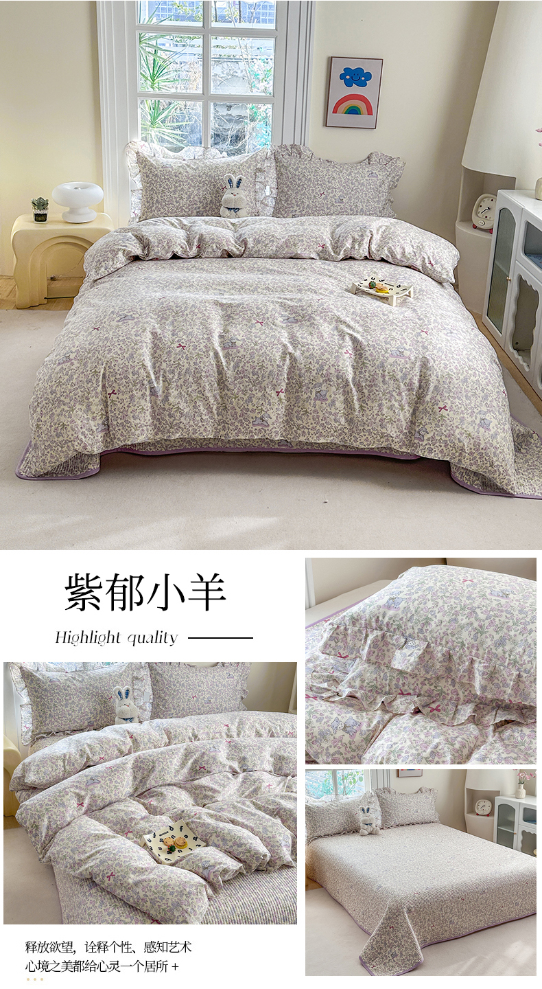 嘉汀兰家居 2025新款13372单面全棉高温砂洗绗缝单床盖,床盖四件套(同款花边被套) 紫郁小羊