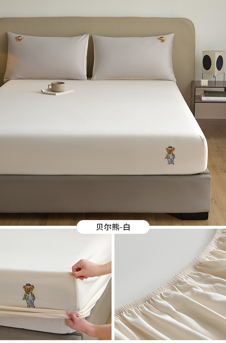商品名称:禾时 2025新款A类全棉卡通小熊刺绣床笠床套床罩床垫保护套 贝尔熊-白
