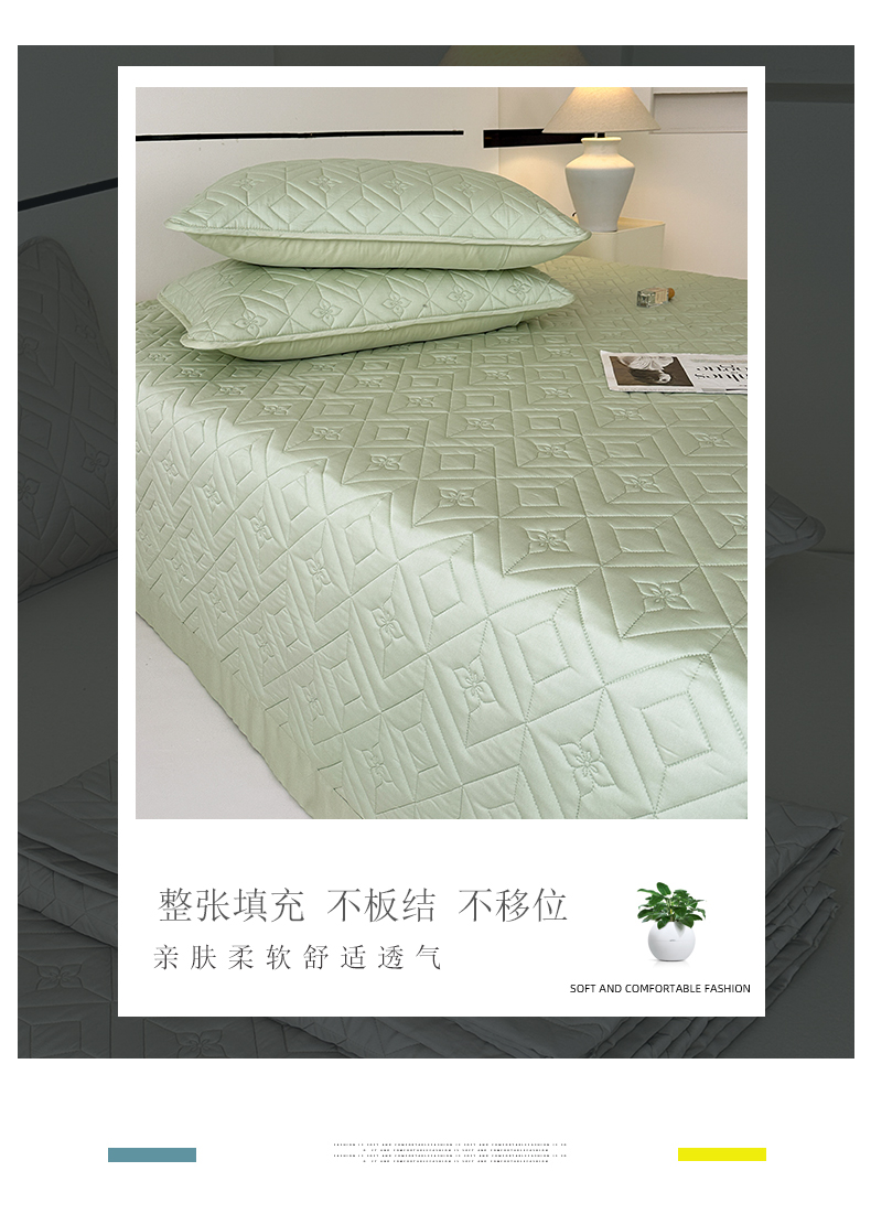 (总)云雀 2025新款舒适莱赛尔天丝夹棉床盖,菱格床盖-豆绿,菱格床盖-豆沙,菱格床盖-浅灰,菱格床盖-玉粉