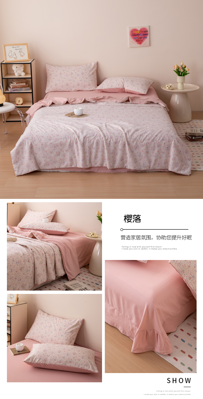 商品名称:南北家居 2025新款针织棉双层纱夏被四件套 樱落