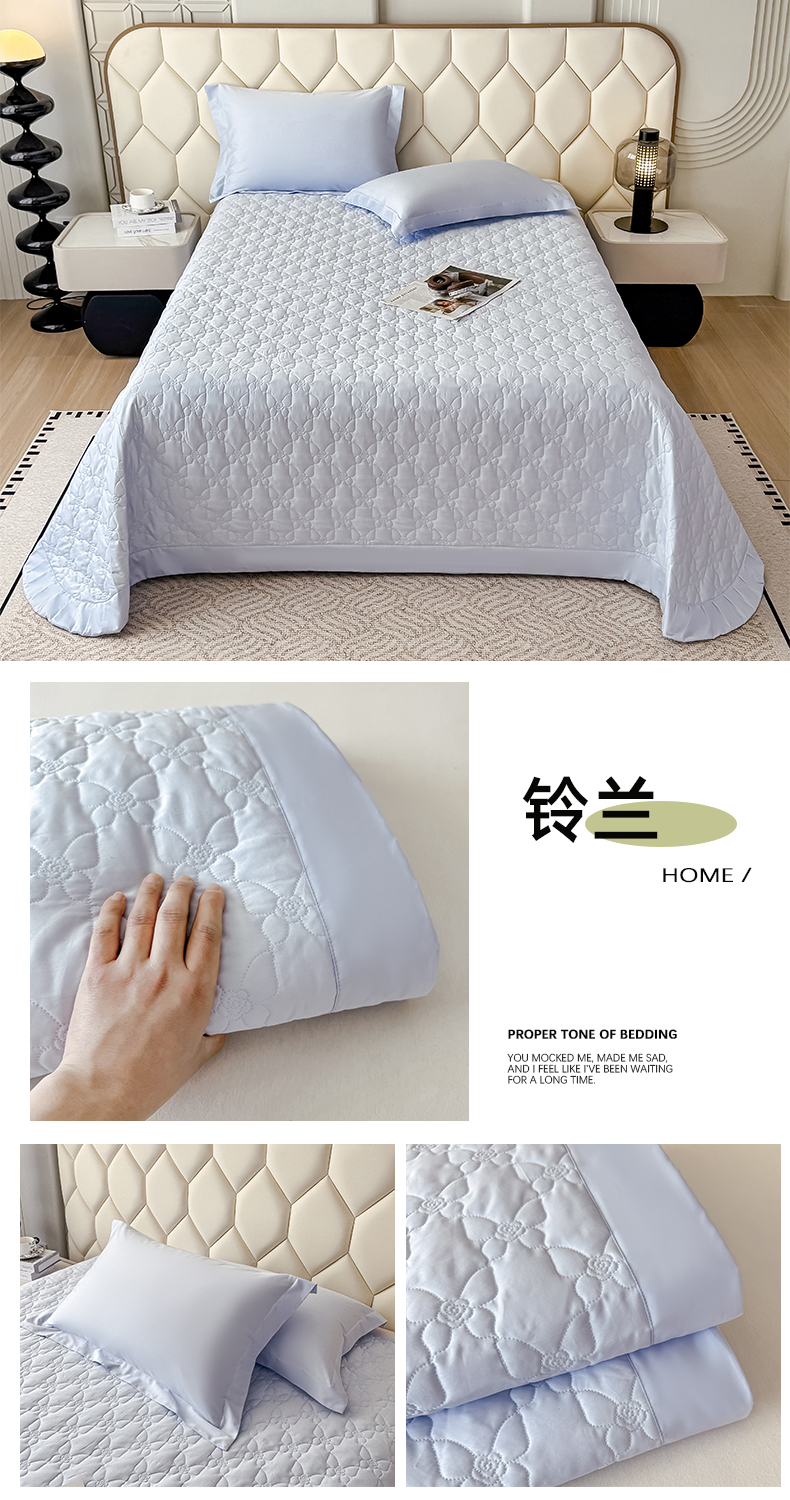 • 91家纺网 家纺一手货源 找家纺 好阁家纺 2025新款100支全棉蚕丝豆邦纤维床盖 铃兰