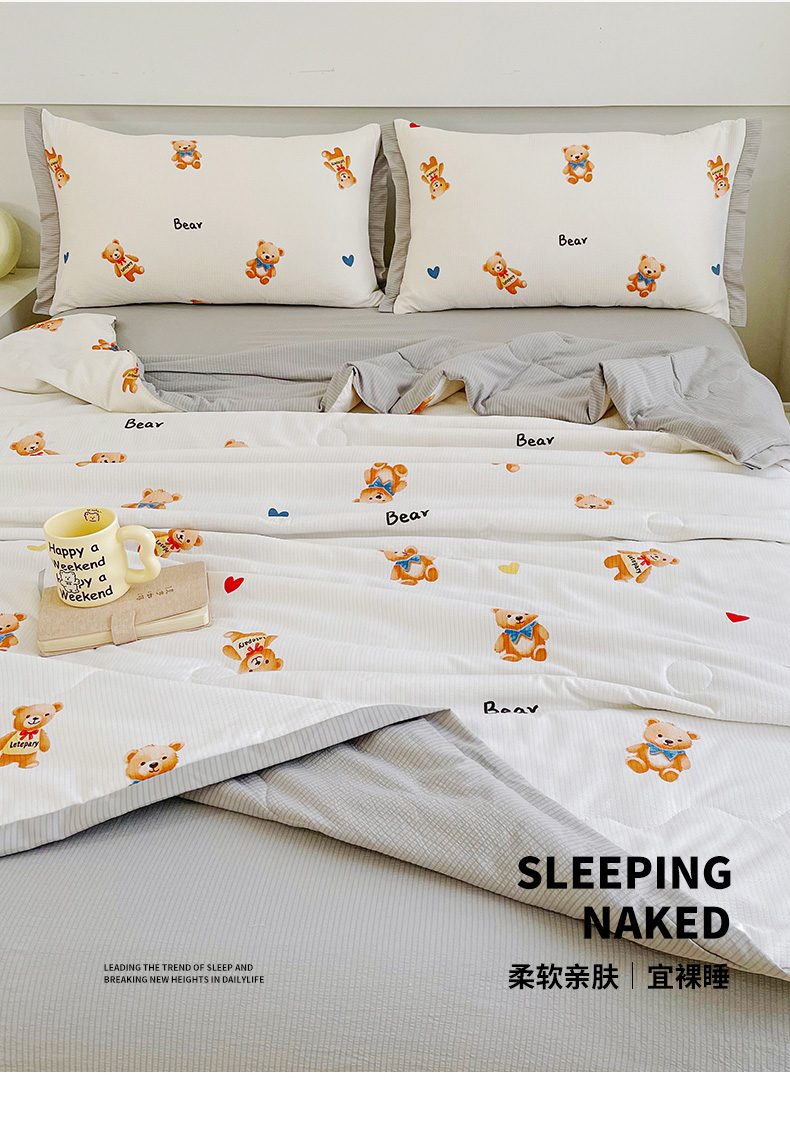 南北家居 2025新款亲肤泡泡棉提花夏被 欢乐熊