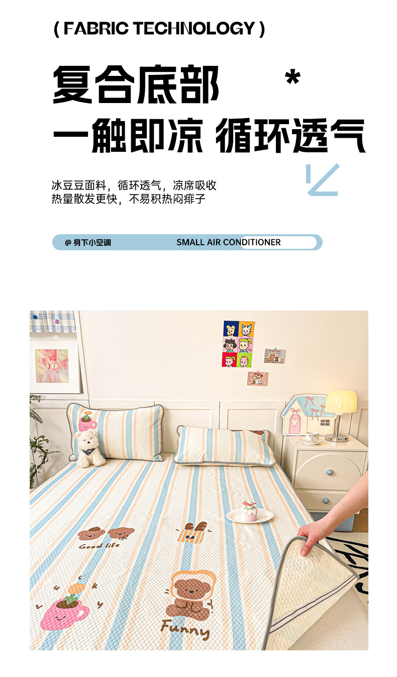 川悦生活 2025新款大版冰豆豆凉豆豆凉席 爱生活的小熊