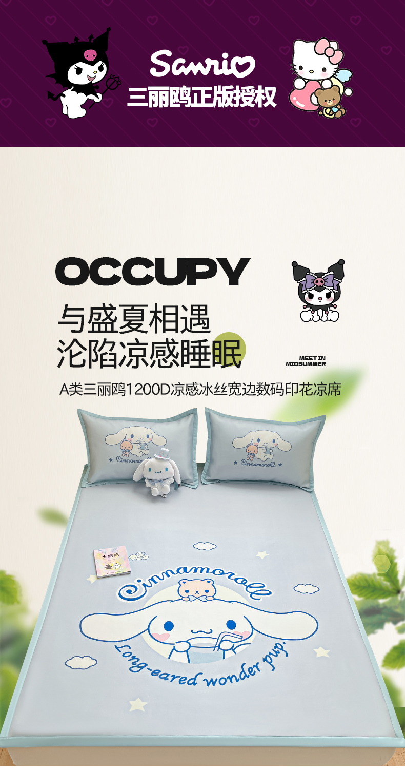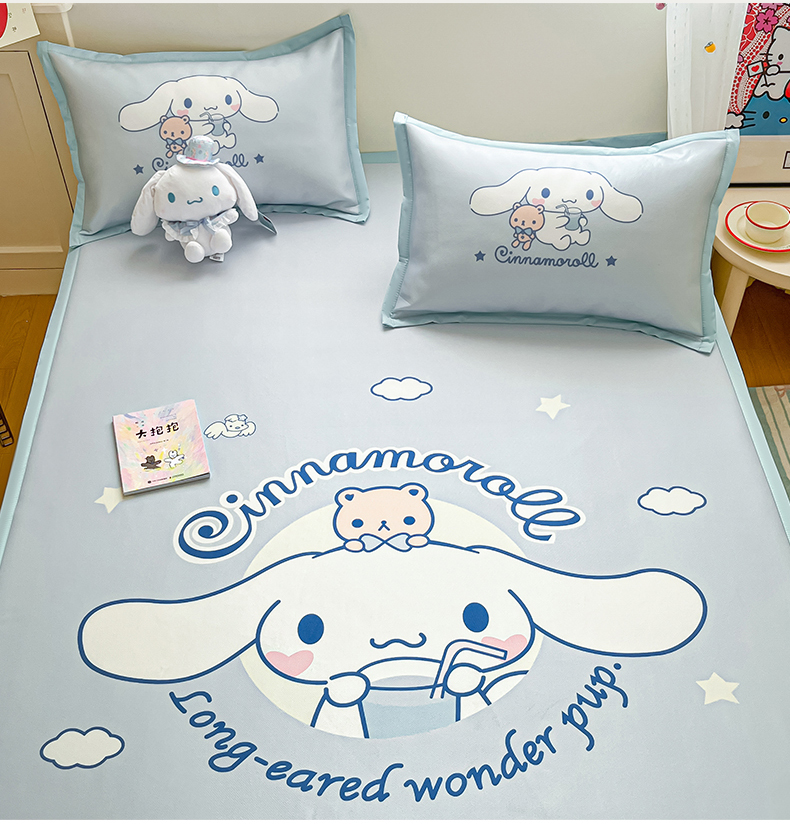 商品名称:桃子家居 2025新款A类三丽鸥授权数码印花中分子1200D凉感冰丝宽边凉感软席席子 冰丝席-云朵大耳狗