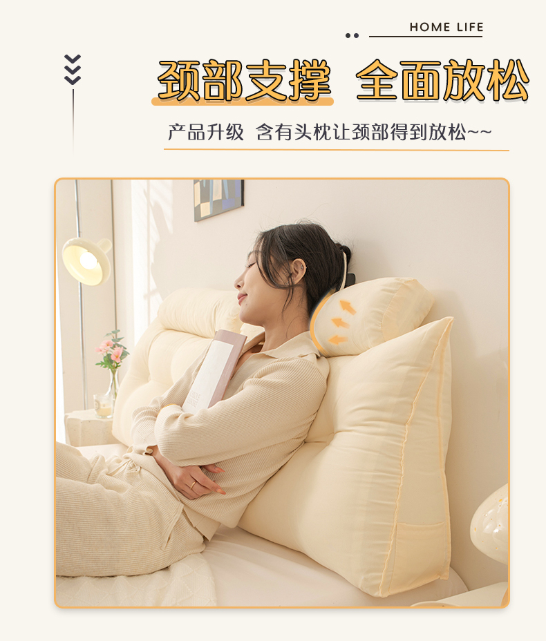 高级感床头大靠垫三角床上靠枕护腰榻榻米靠背浅粉沙发软包拆洗 米黄