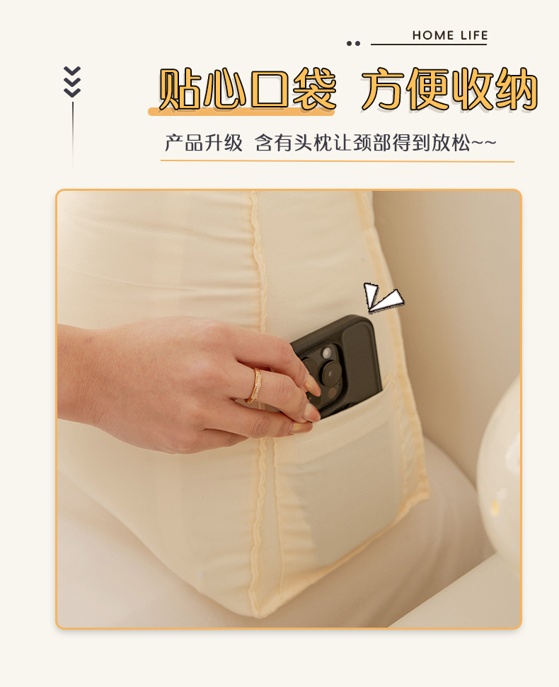 (总)碧尔家居 2025新款荷兰绒弯型三角+头枕床头靠背,奶咖,天蓝,香槟,樱花粉