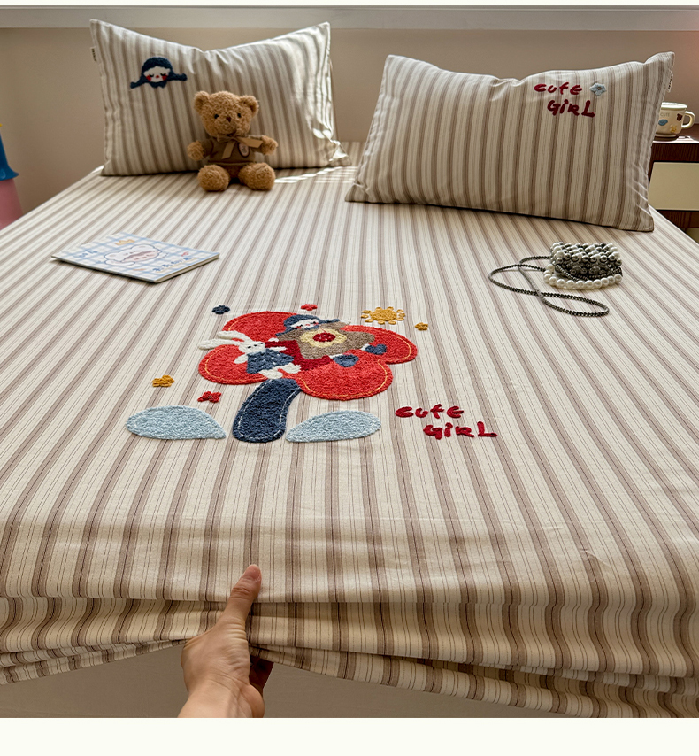 • 91家纺网 家纺一手货源 找家纺 蓝邻家纺 2025春夏新款全棉纯棉老粗布刺绣床笠凉席席子 甜甜圈