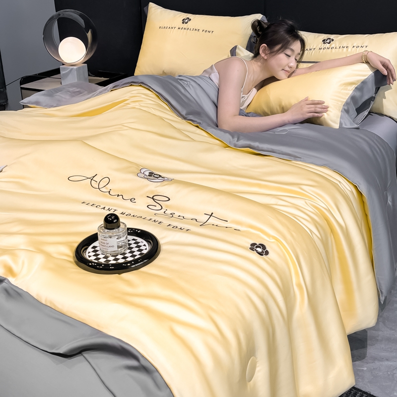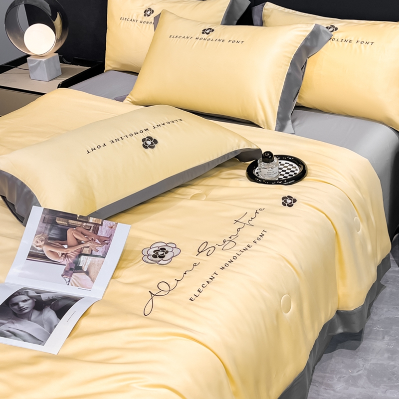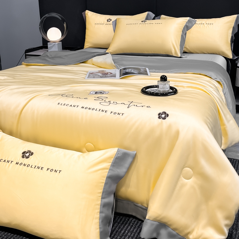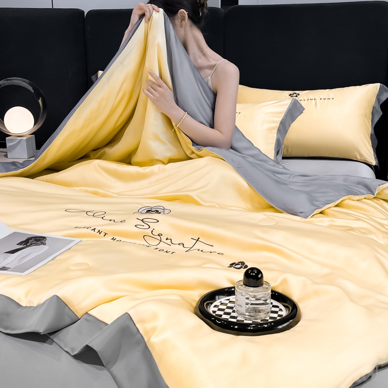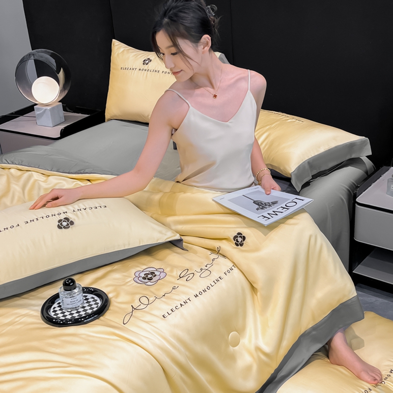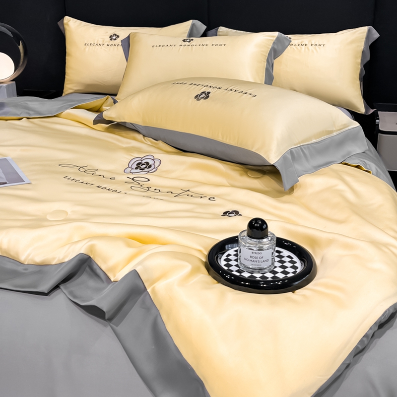 当前位置: 91家纺网 > 商品网购 > 床品套件 > 四件套 > 夏被四件套 > 仔仔熊 2025新款水洗真丝夏凉被四件套-春暖花开系列 春暖花开 云初黄-中灰