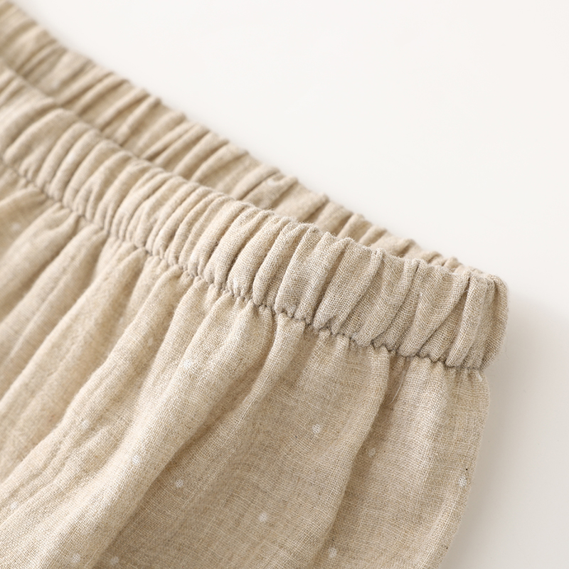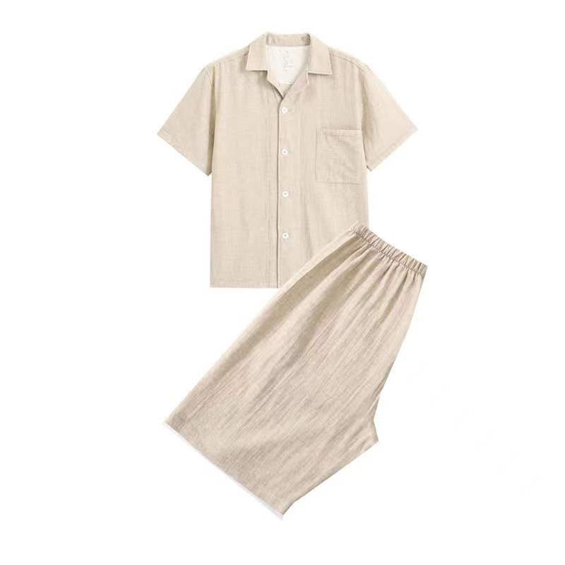 商品名称:伊嫚家居 2025新款日式无印风良品全棉双层纱睡衣女纯棉短袖短裤睡衣夏季纯棉短袖家居服 米色波点男