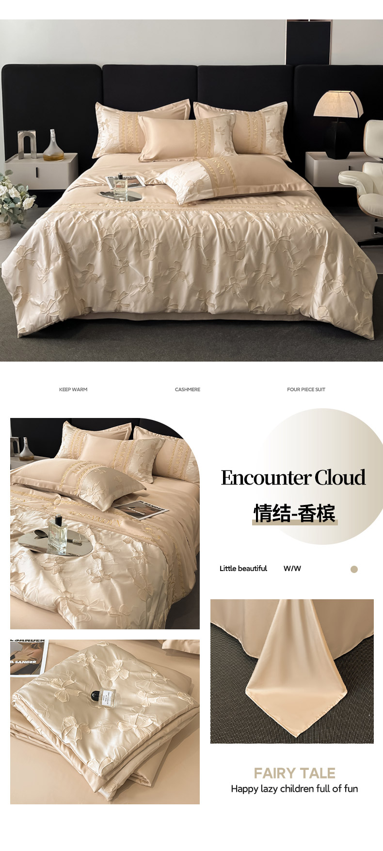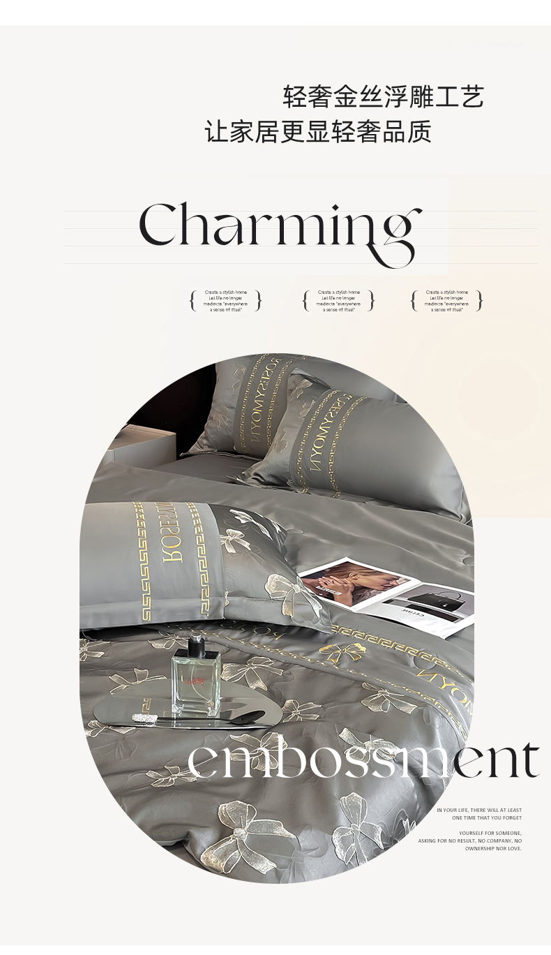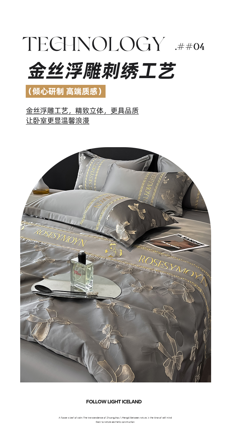(总)金阳光家纺 2024轻奢款立体浮雕水洗天丝四件套,奶白卡其,奶白灰,嫩粉,浅灰高级灰,香槟灰,高级灰香槟