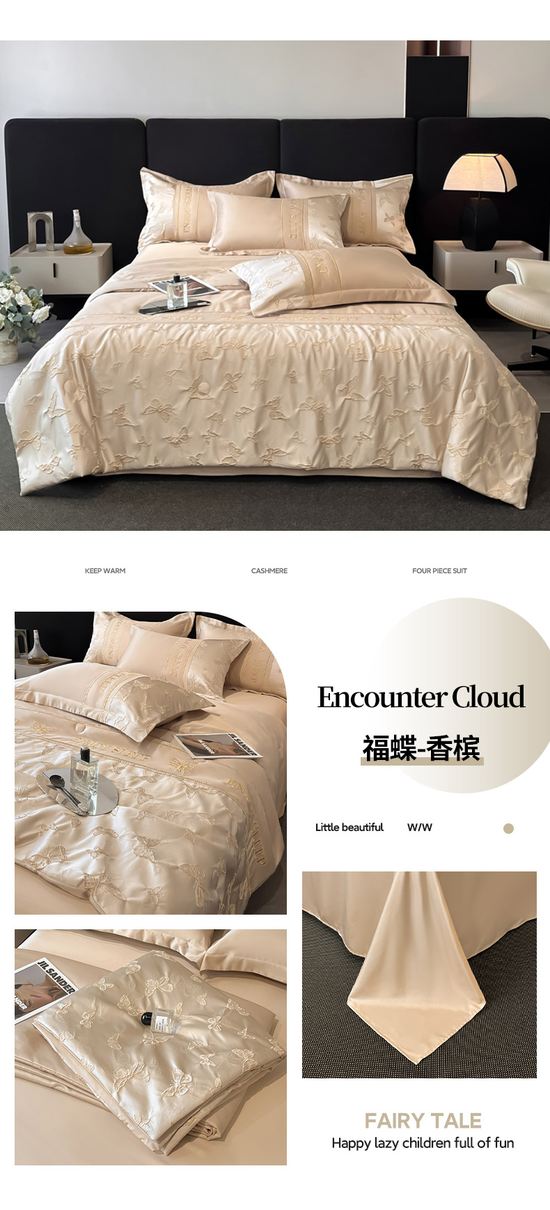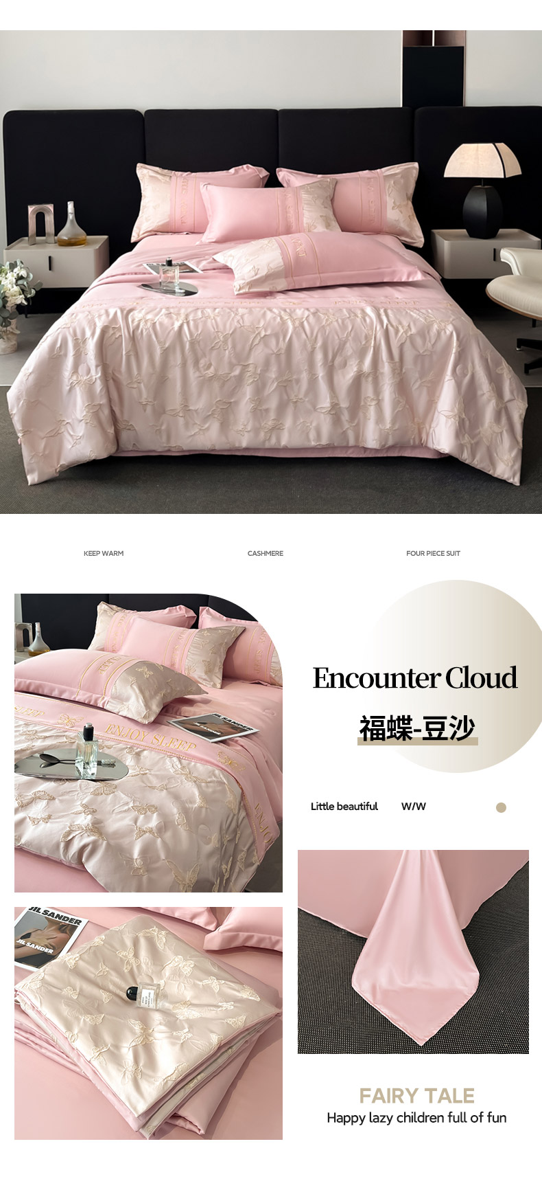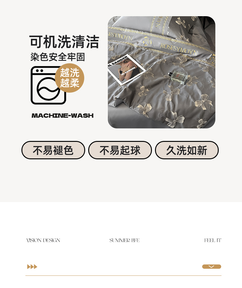 (总)金阳光家纺 2024轻奢款立体浮雕水洗天丝四件套,奶白卡其,奶白灰,嫩粉,浅灰高级灰,香槟灰,高级灰香槟