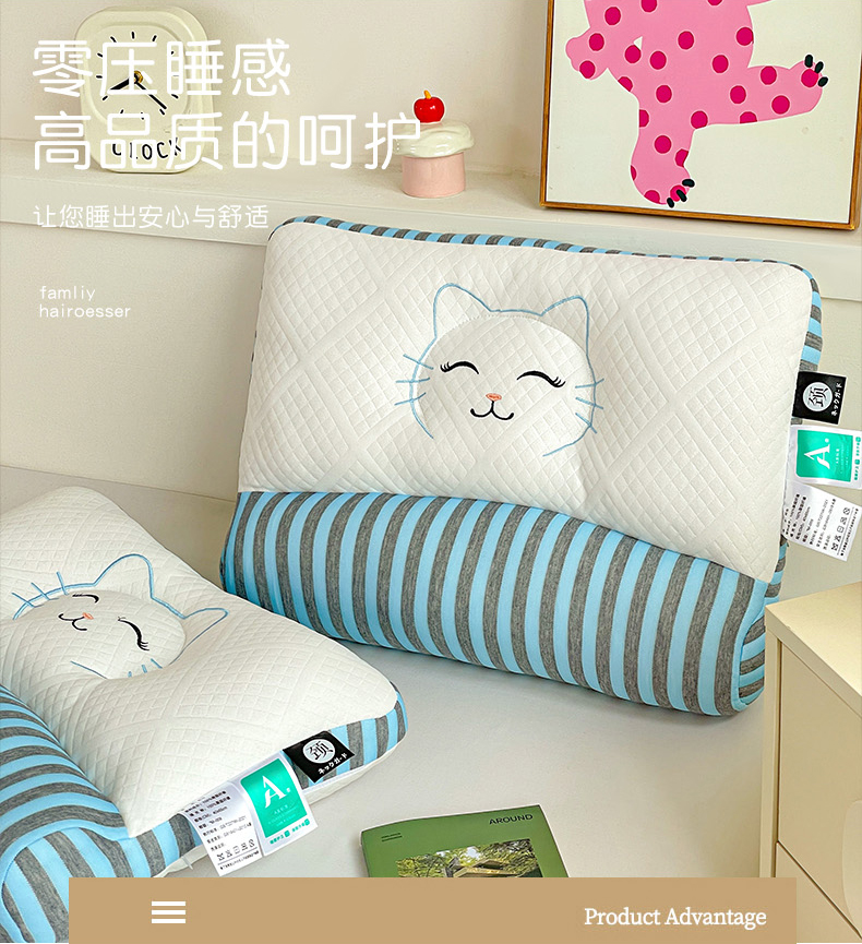 商品名称:亦帆枕芯 2025新款学生情侣护颈枕枕头枕芯-笑脸猫 笑脸猫-蓝
