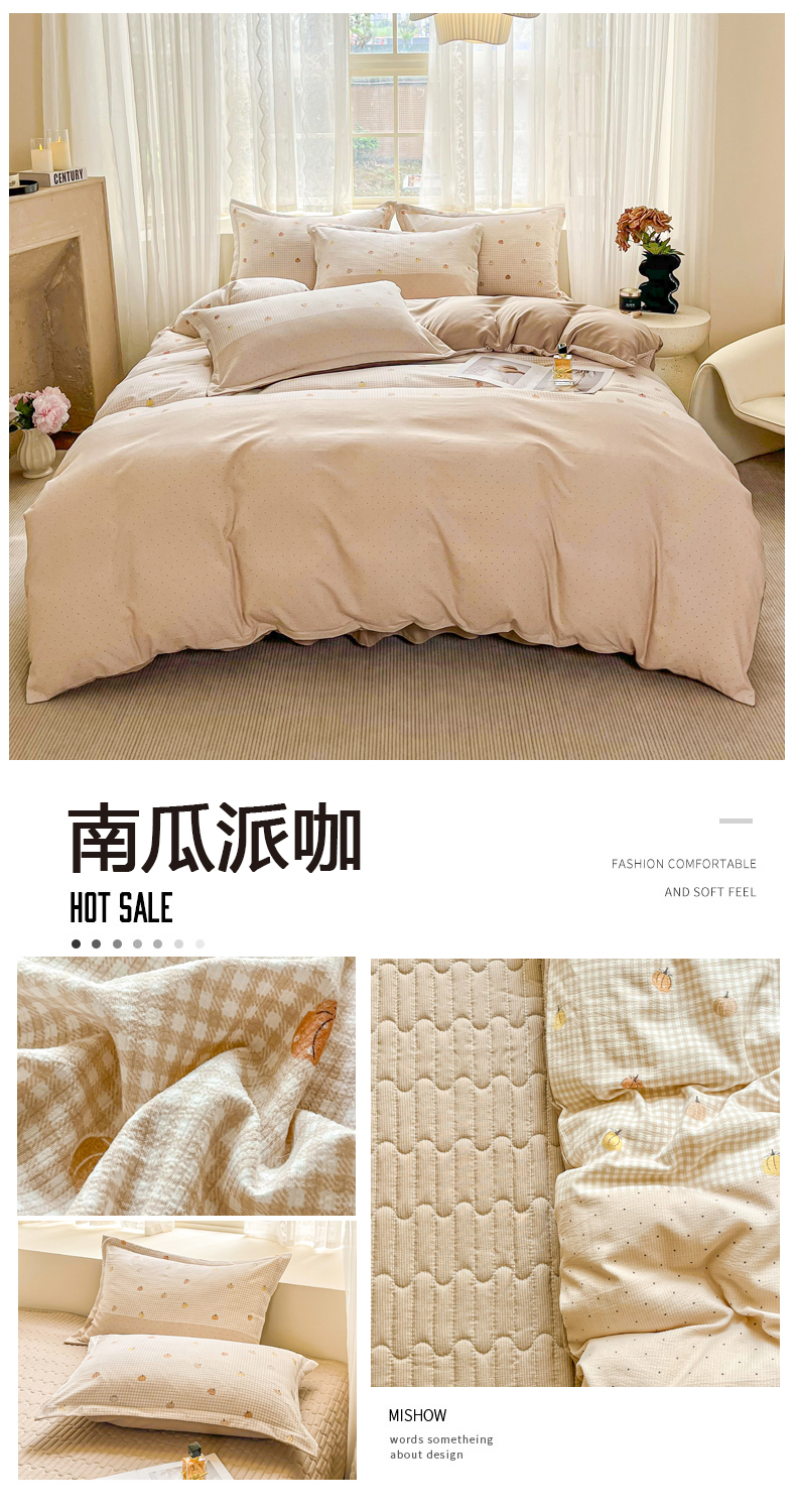 商品名称:2026春夏新款拼色提花双层纱古法水洗床盖四件套提花云感棉 南瓜派咖