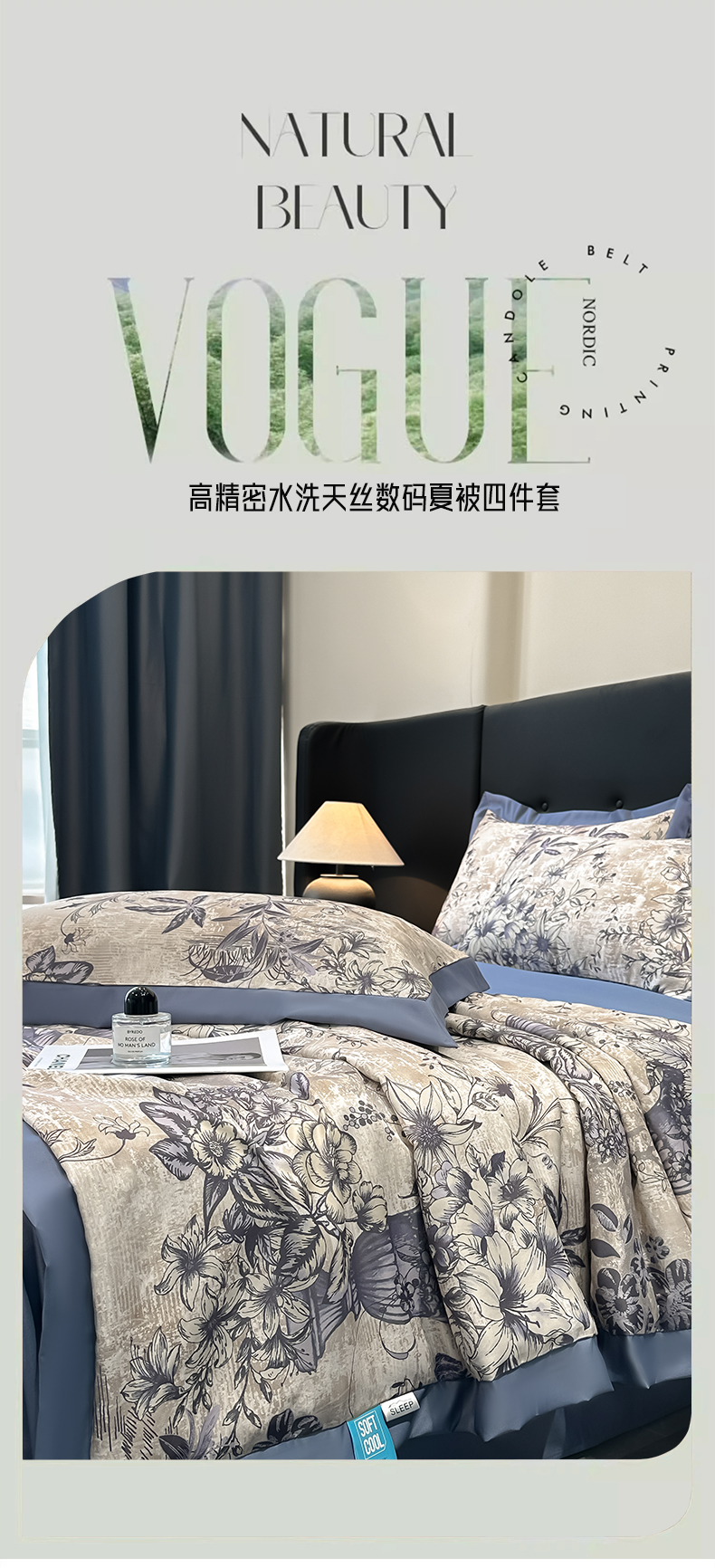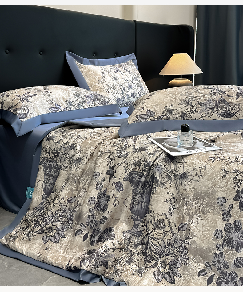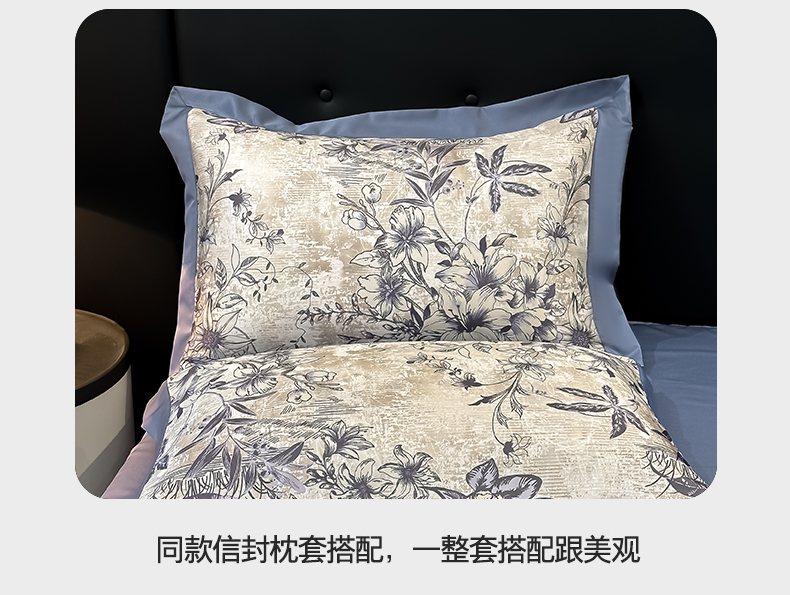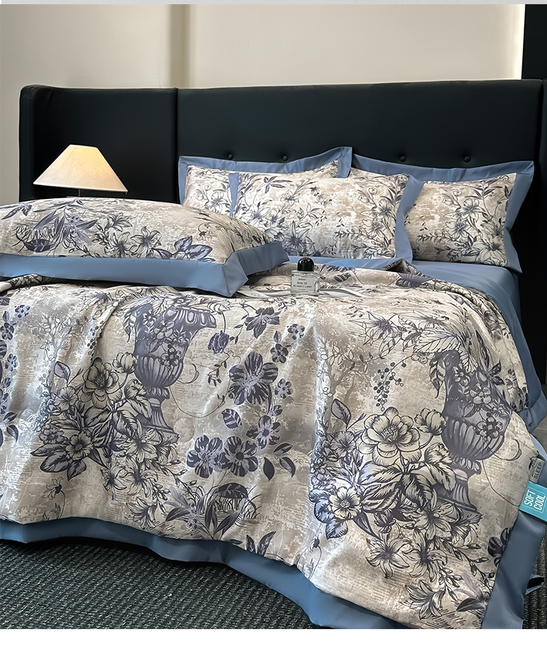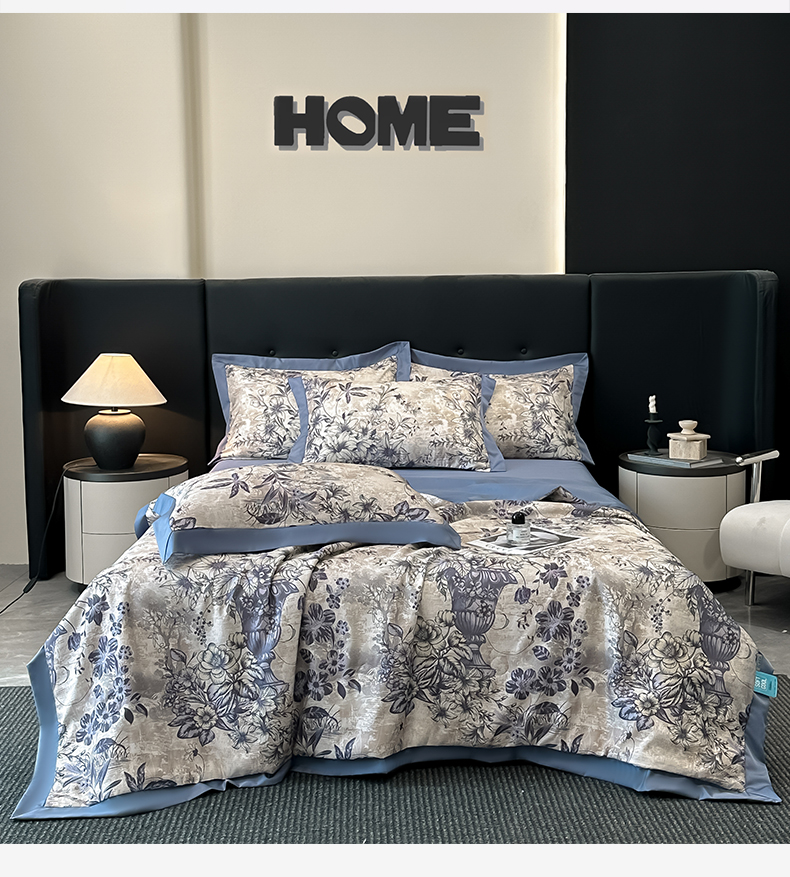 商品名称:花漾家居 2025新款数码水洗天丝单夏被夏被四件套 幽香蓝
