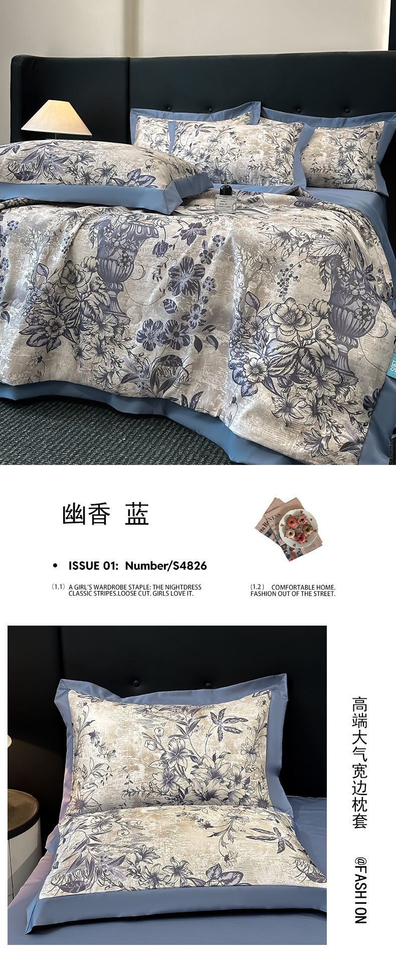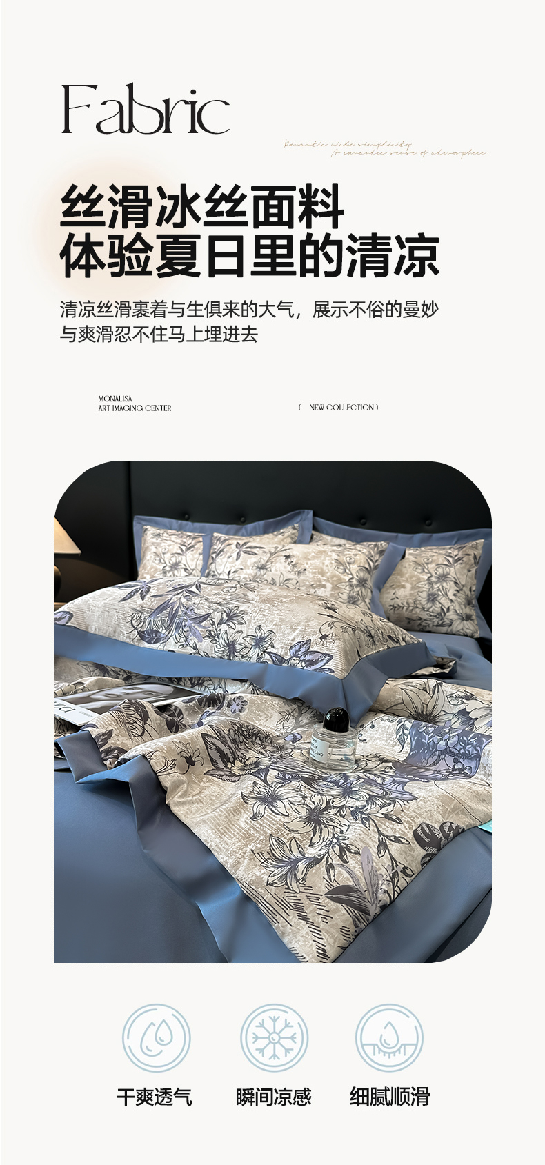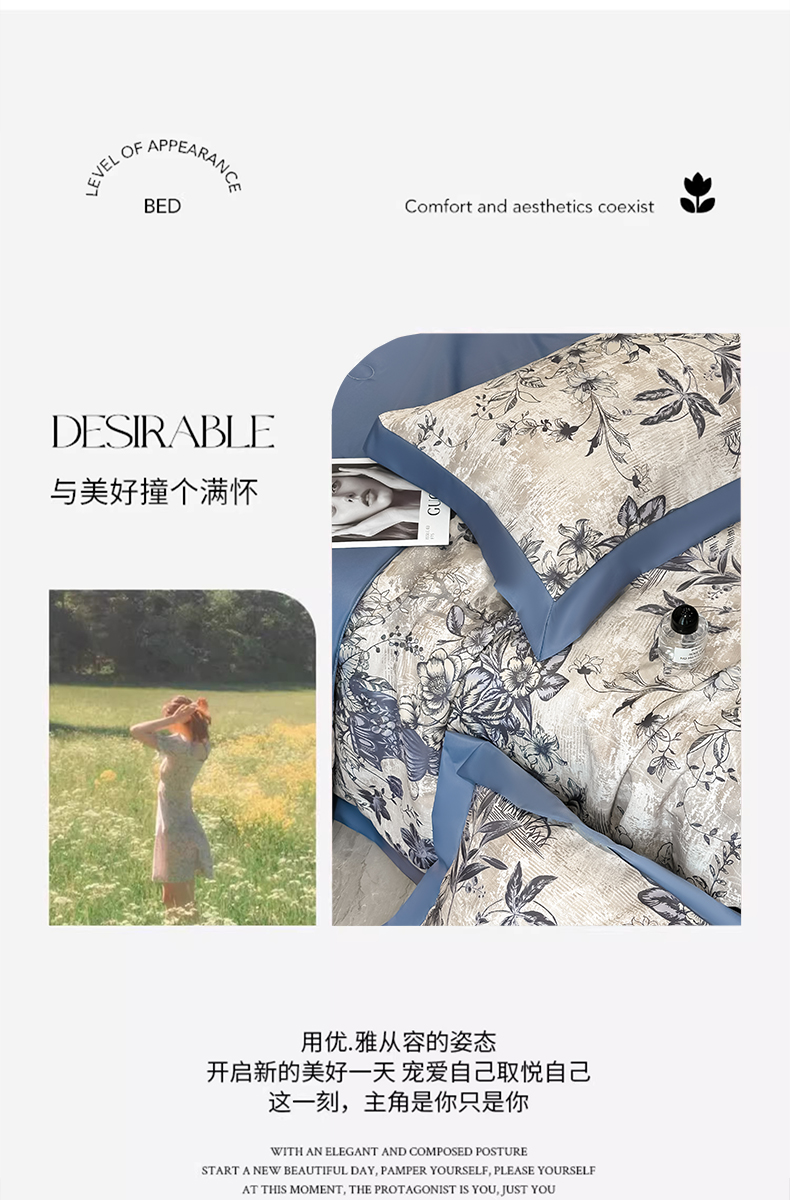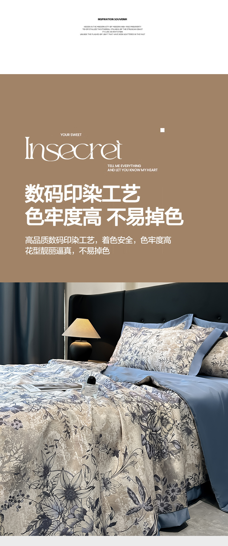 商品名称:花漾家居 2025新款数码水洗天丝单夏被夏被四件套 幽香蓝