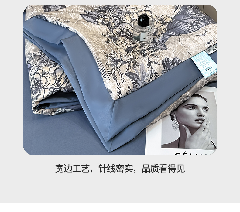 花漾家居 2025新款数码水洗天丝单夏被夏被四件套 幽香蓝